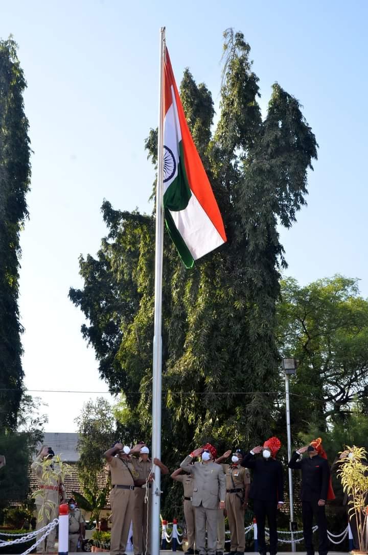 मध्यवर्ती प्रशासकीय इमारत टप्पा क्रमांक 3 च्या आवारातही सकाळी 8.00 वा. ध्वजवंदन करण्यात आले. जिल्हा अधिक्षक कृषी अधिकारी संभाजी ठाकूर यांच्या हस्ते ध्वजवंदन करुन सामुहिक राष्ट्रगीत गायन करुन राष्ट्रध्वजास अभिवादन करण्यात आले. याप्रसंगी कृषि विभागाचे उप संचालक अनिल भोकरे, जिल्हा उप निबंधक (सहकार) संतोष बिडवई, सह जिल्हा निबंधक(मुद्रांक) सुनिल पाटील, जिल्हा महिला व बालविकास अधिकारी विजयसिंग परदेशी यांचेसह प्रशासकीय इमारत आरातील विविध विभागांचे अधिकारी कर्मचारी मोठ्या संख्येने उपस्थित होते.