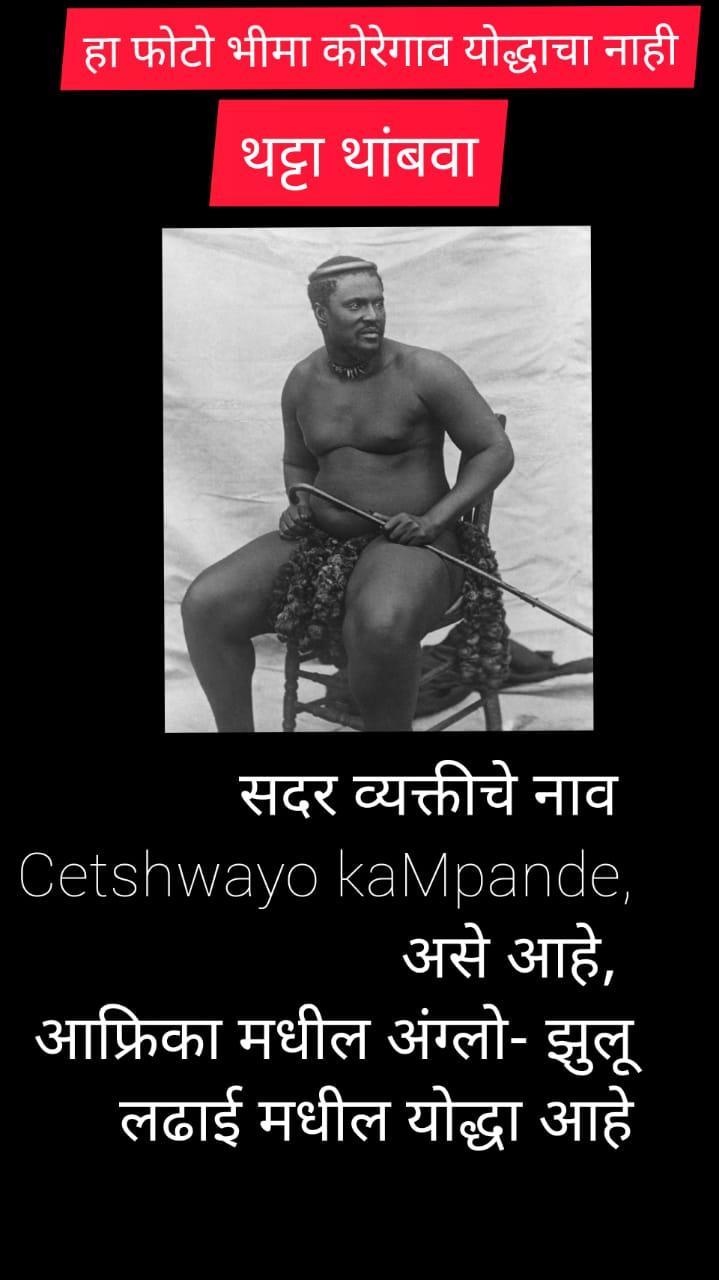 सदर वायरल होणारा फोटो हा केतश्वयो कांपांडे नामक व्यक्तीचा आहे . जो आफ्रिका मधील झुलू राज्याचा राजा होता. त्याचा जन्म १८२६ रोजी झाला. १८७३ पासून ते १८७९ दरम्यान तो झुलू राज्याचा राजा होता. १८७९ रोजी अंग्लो झुलू युद्ध झाले. केतश्वयो कांपांडे याने सातत्याने सदर युद्धाला विरोध केला आणि ब्रिटीशांशी शांतता प्रस्थापित करण्याचा निष्फळ प्रयत्न केला, आणि युद्धात झुलूच्या पराभवानंतर त्याचा पराभव झाला आणि निर्वासित झाला. नंतर त्याला झुलुलँडला परत जाण्याची परवानगी देण्यात आली, जिथे तो १८८४ मध्ये मरण पावला.
