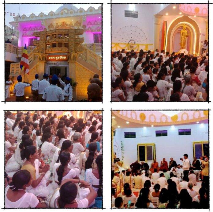 दिनांक 30 अप्रैल 2022 : भोपाल : दि बुध्दिस्ट सोसायटी आॅफ इंडिया शाखा भोपाल के करुणा बुध्द विहार में तथागत भगवान बुध्द के प्रतिमा का अनावरण संपन्न हुआ । महापरित्राण कर धम्म गुरु भदन्त बानगल विमलतिस्स ,भन्ते यू तपस्वी , भदन्त संघसेना, लामा शेडुप चम्पा, लामा कर्मा चुलतरीम ,भदन्त आर्यवंश , लामा समरमा, भन्ते म्योहीकोजी , भदन्त नागदिपांकर , भन्ते जीवनदर्शी, भन्ते रत्नबोधी भन्ते नागसेन, भन्ते जीवक, भन्ते धम्मको ने प्रतिमा के अनावरण किया । दि बुध्दिस्ट सोसायटी आॅफ इंडिया के राष्ट्रीय अध्यक्ष श्री चंद्रबोधी पाटील, ट्रस्टी चेयरमैन डा हरीश रावलिया, ट्रस्टी शंकर ढेंगरे, ट्रस्टी धम्मरतन सोमकुवर, भिमराव कांबले रिपब्लिकन पार्टी ऑफ इंडिया के राष्ट्रीय महासचिव डाॅ मोहनलाल पाटील, समता सैनिक दल मध्यप्रदेश के सरंक्षक यु जी चवरे, हरीश लोनारे तथा बुध्दिस्ट सोसायटी के बी टी गजभीये, धनश्याम चिरनकर, सी एल बौध्द, गौतम पाटील, वामन जंजाले, चिंतामन पगारे,अशोक पाटील, मनोज मानिक,अशोक वानखेडे एवं रामु गजभीये के साथ मध्यप्रदेश के बौध्द उपासक एवं उपासिकाये उपस्थित थी।