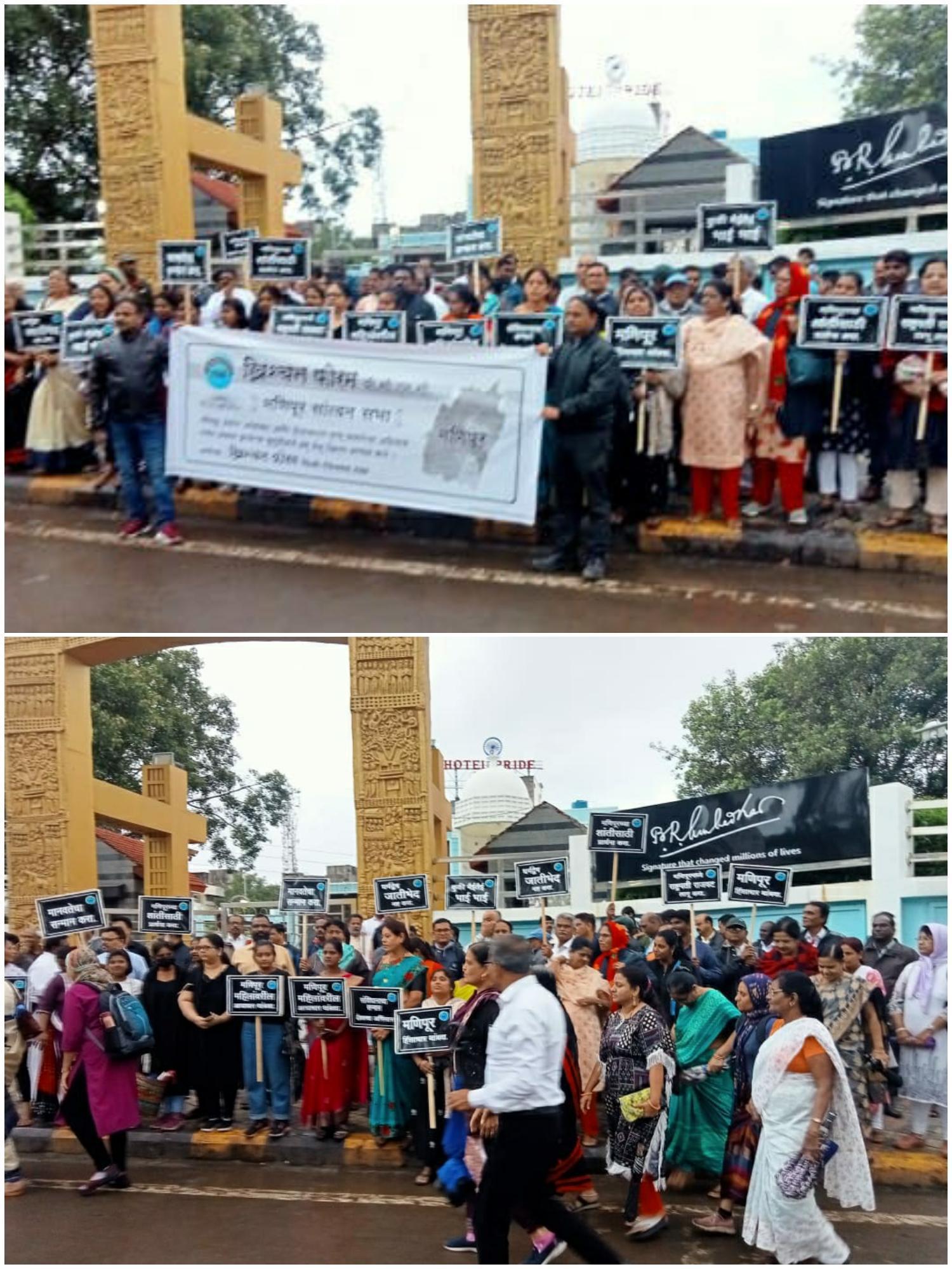 शहरात गेली दहा दिवस मणिपूर घटनेचा निषेध म्हणून मोर्चे आंदोलन होत आहेत आज दि.२८ जूलै २०२३ रोजी सायंकाळी ६:३० वा. ख्रिश्चन फोरम. पिंपरी चिंचवड शहर यांनी आयोजित केलेले मणिपूर राज्यातील हिंसाचाराच्या विरोधात आंदोलन सांत्वन सभेस सर्व राजकिय, सामाजिक पक्ष-पार्टी- संस्थेचे नेते उपस्थित होते. यात मा. मानव कांबळे, मा. मारुती भापकर, मा. कैलाश कदम, मुस्लिम समाजाचे मा. जुबेर खान तसेच पिंपरी चिंचवड शहरातील सर्व चर्चचे पाळकवर्ग आणि ख्रिस्ती समाजातील लोक शेकडोच्या संख्येने उपस्थितीत होते. युनायटेड चर्च ऑफ ख्राईस्टचे रेव्ह. सुधीर पारकर, ऑल पीपल फेलोशीपचे रेव्ह. रेजी थॉमस, तळेगाव मेथाडिस्ट चर्चचे रेव्ह. जोसेफ ढालवाले आणि के. डी. सी. चर्चचे रेव्ह. सुनील चोपडे, पास्टर अविनाश काटे, पास्टर दिलीप काळे, पास्टर मोझेस वाघमारे, पास्टर दानिएल अँथोनी, पास्टर लीनास दास, पास्टर मार्क, पास्टर भास्कर साबळे, भीम शक्तीच्या श्रीमती अनिता, श्रीमती रिबेका अमोलीक, पास्टर अभिषेक शुक्ला, पास्टर सतीश खरचने, युथ ख्रिश्चन फोरमचे दनियल दळवी, सुनील जाधव, रिजनल ख्रिश्चन सोसायटीचे अध्यक्ष प्रशांत केदारी आणि या निषेध सभेचे आयोजक ख्रिश्चन फोरमचे सर्व पदाधिकारी स्नेहल डोगरदिवे, सतीश नायर, नितीश दुबे, मंगेश काळे तसेच अध्यक्ष पास्टर राजेश केळकर हे उपस्थित होते. मणिपूर हिंसाचार प्रकरणा विरोधात पिंपरी चिंचवड शहरातील ख्रिस्ती समाज प्रथमच रस्त्यावर उतरला होता आणि या समाजाला इतर समाजाने ही खूप छान असा प्रतिसाद दिला. या वेळी मारुती भापकर यांनी जातीपातीत गटातटात एवून निषेध न करता त्या मूली ख्रिश्चन समाजाच्या नसून भारत देशाच्या मूली आहेत असे सांगीतले. या नंतर काॅंग्रेस पक्षाचे पिंपरी चिंचवडचे अध्यक्ष कैलाश कदम यांनी सांगीतले की आमचा लढा हा जातियवादी धूर्त भाजपा सरकारचे विरोधात सतत सूरूच आहे. मणिपूरमधे त्यावेळी फक्त दोनच भगिनी मारल्यात की अनखी ही जास्त बंधूभगिनींची हत्या केलीय हे समजायला तयार नाही कारण इन्टनेटची सेवा या राज्यात बंद केलेली आहे. यात पूढे जावून मानव कांबळे यांनी भाजप सरकारला मनुवादी, खोटारडे, “अपने मनकी बोलने वाले, दूसरोंकी नही सूनने वाले” असा उल्लेख केला रविवारी पंतप्रधानांनी मनकी बात न करता मणिपूर की बात करावी असे आपल्या वक्तव्यात केले. उपस्थित सर्व महिलांनी मेनबत्ती पेटवून भाजपा केंद्र सरकार व मणिपूर राज्य सरकारचा निषेध केला. शेवटी सर्वांनी देशात शांतता पून्हा प्रस्थापीत व्हावी व मृत भगिनींच्या आत्म्यास शांती लाभावी म्हणून देवा जवळ प्रार्थना केली.