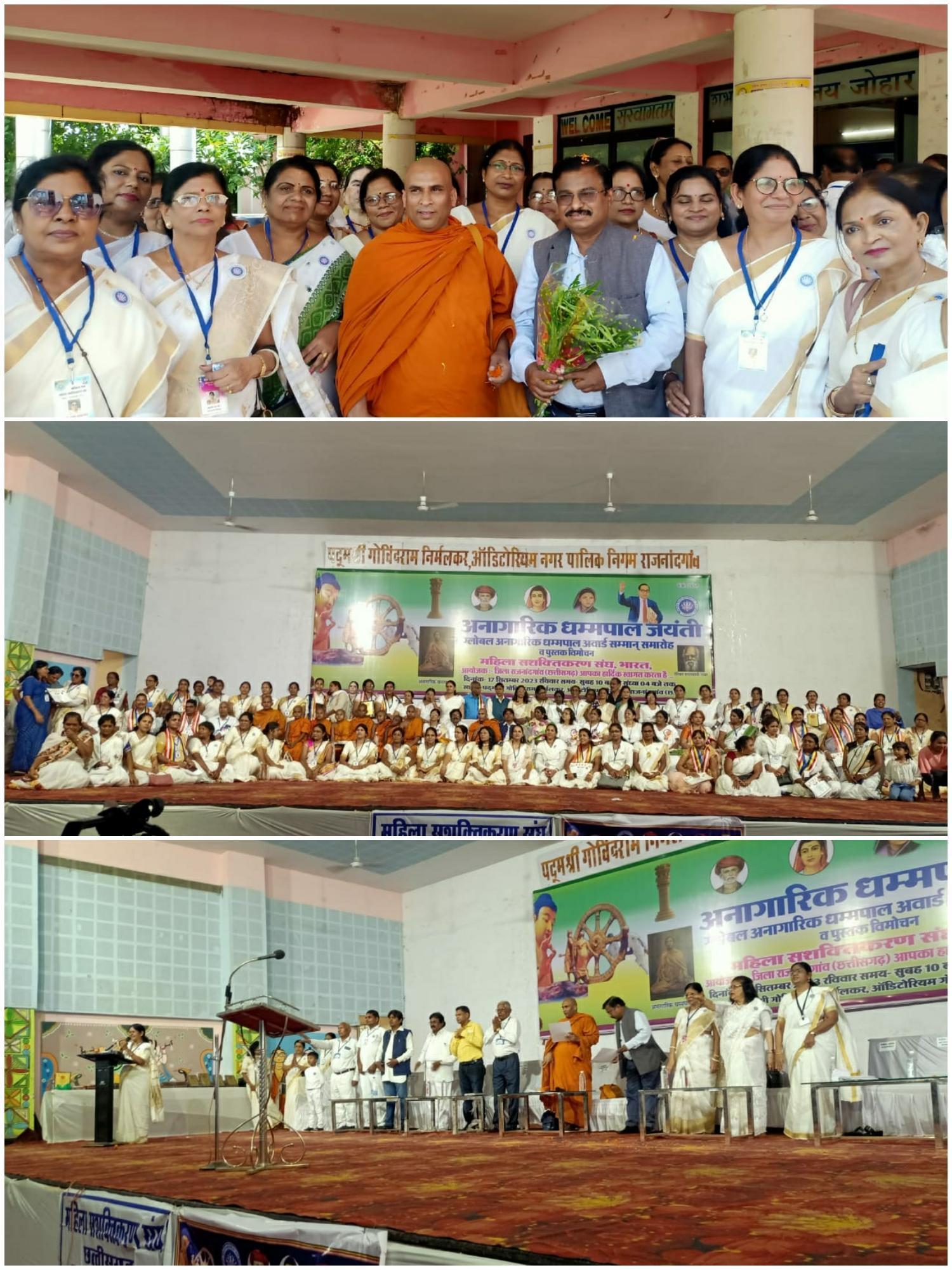 दुर्ग, 17 सितंबर 2023 को छत्तीसगढ़ प्रदेश की संस्कारधानी राजनांदगांव के गौरव पथ में स्थित पद्मश्री गोविंद राम निर्मलकर ऑडिटोरियम में महिला सशक्तिकरण संघ भारत के तत्वाधान में राष्ट्रीय स्तर पर अनागारिक धम्मपाल और पेरियार इ व्ही नायकर रामासामी की संयुक्त जयंती समारोह परम आदरणीय आयुष्मान एमडी कावरे सचिव आबकारी स्वतंत्र प्रभार छत्तीसगढ़ शासन रायपुर तथा पूज्य भदंत डॉक्टर चंद्र कीर्ति पाली भाषा विभाग अध्यक्ष