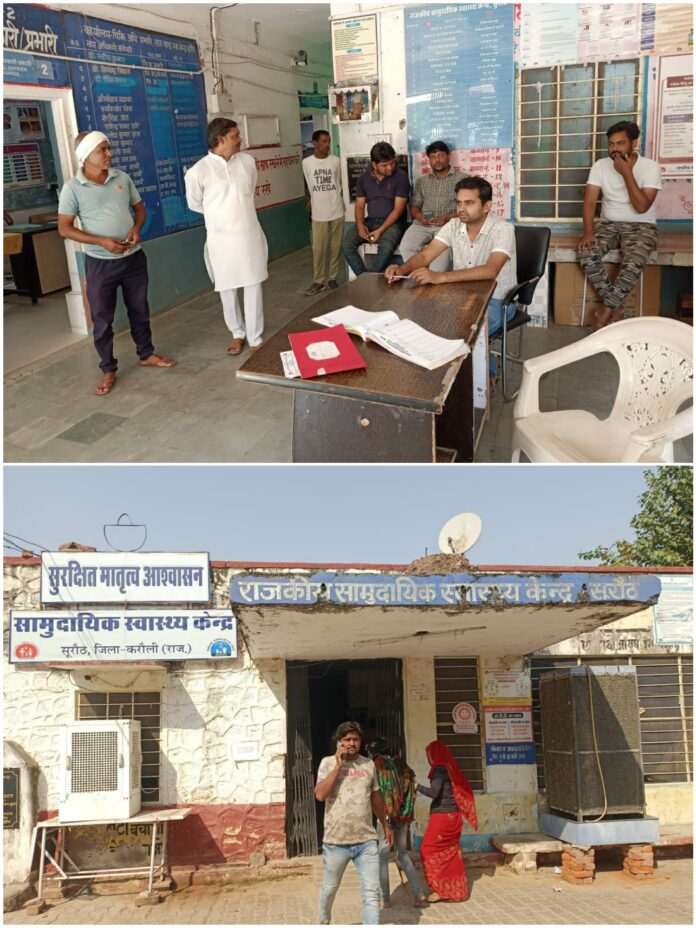 कस्बा सूरौठ के राजकीय सामुदायिक स्वास्थ्य केंद्र में राज्य सरकार ने डॉक्टरों के 6 पद स्वीकृत कर रखे हैं लेकिन चार पद लंबे समय से रिक्त चल रहे हैं। अस्पताल में केवल चिकित्सा प्रभारी हिमांशु सिंघल एवं रोहित मित्तल ही कार्यरत है। विशेषज्ञ चिकित्सकों के चार पद खाली होने के कारण अस्पताल में चिकित्सा व्यवस्था चरमराई हुई है। इस स्वास्थ्य केंद्र पर करीब 25 हजार की आबादी वाले सूरौठ कस्बे एवं तहसील क्षेत्र के 50 से अधिक गांवों की चिकित्सा व्यवस्था की जिम्मेदारी है। अस्पताल की ओपीडी करीब 300 है तथा अस्पताल में 19 चिकित्सा कर्मियों का स्टाफ है। अस्पताल में विशेषज्ञ चिकित्सकों के पद रिक्त होने पर कस्बे के लोगों ने नाराजगी जताई है। सूरौठ क्षेत्र में डेंगू एवं मौसमी बीमारियों का प्रकोप होने के कारण अस्पताल में चिकित्सकों की पद भरना जरूरी है। हिंडौन देहात ब्लॉक कांग्रेस कमेटी के प्रवक्ता प्रमोद तिवाड़ी, कांग्रेस नेता केदार मीणा, उपसरपंच श्याम सुंदर सैनी, रिंकू मीणा, राहुल मीणा, जय सिंह मीणा, अजय मावई आदि ने शनिवार को राजकीय अस्पताल पहुंचकर चिकित्सकों के पद रिक्त होने पर नाराजगी जताई। लोगों ने कलेक्टर एवं चिकित्सा विभाग के अधिकारियों से डॉक्टरों के रिक्त पदों को भरने एवं बीमारियों की रोकथाम के लिए सूरौठ क्षेत्र में फॉगिंग करवाने की मांग की है।