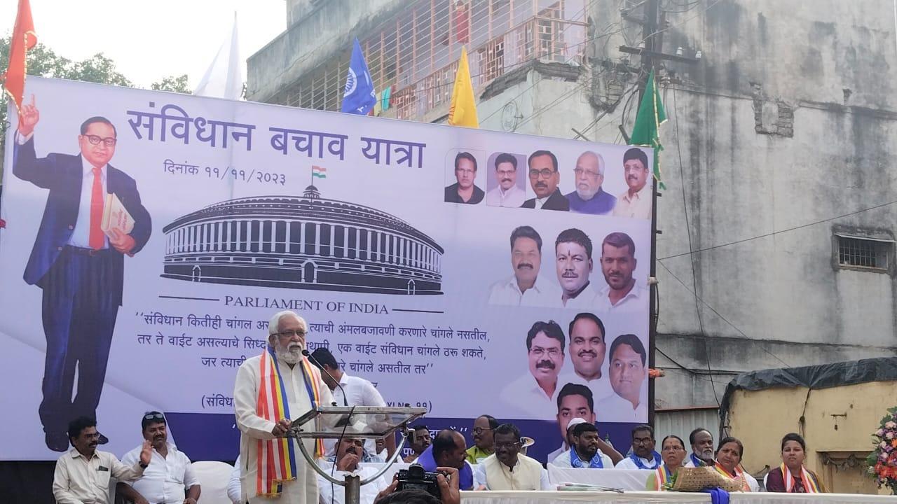 डॉक्टर बाबासाहेब आंबेडकर यांचे नातू व इंदुमिल आंदोलनाचे प्रणेते रिपब्लिकन सेनेचे राष्ट्रीय अध्यक्ष सरसेनानी आनंदराज आंबेडकर साहेबांच्या मार्गदर्शनाखाली व समाजभूषण मा. काकासाहेब खंबाळकर अध्यक्ष महाराष्ट्र प्रदेश यांच्या नेतृत्वाखाली दिनांक २४ ऑक्टोंबर २०२३ पासून लोकशाही मार्गाने दीक्षाभूमी नागपूर येथून संविधान बचाव यात्री सुरुवात झाली ही संविधान बचाव यात्रा दीक्षाभूमी नागपूर इथून सुरू होऊन महाराष्ट्रातील सर्व जिल्ह्यात जाणार आहे महाराष्ट्रातील सर्व जिल्हे फिरून या यात्रेचा समारोप दिनांक ६ डिसेंबर २०२३ रोजी चैत्यभूमी दादर मुंबई येथे येथे होणार आहे पुणे जिल्ह्याच्या दिशेने जात असताना सविधान बचाव यात्रेचे आगमन दौंड शहरांमध्ये आगमन दिनांक ११ /११/२०२३ रोजी झाले दौंड गोल्ड राऊंड या ठिकाणावरून सहकार चौक शालिमार चौक हुतात्मा चौक संत गाडगे महाराज स्मारक सम्राट अशोक सविधान स्तंभ छत्रपती शिवाजी महाराज चौक विश्वरत्न डॉ. बाबासाहेब आंबेडकर चौक या सर्व ठिकाणी भव्य दिव्य सविधान यात्रेचे आयोजन केले होते सविधान यात्रेच्या रथामध्ये सविधान प्रस्ताविका ठेवण्यात आली होती दौंड शहराचे सविधान यात्रेचे व सभेची आयोजक आयु. अनिल (बापू) साळवे रिपब्लिकन सेना पश्चिम महाराष्ट्र उपाध्यक्ष आयु. आनंद (दादा) बगाडे रिपब्लिकन सेना पुणे जिल्हा (पूर्व) अध्यक्ष गौतम साळवे माजी नगरसेवक सामाजिक कार्यकर्ते यांनी सविधान यात्रीची पूर्ण आयोजन केले होते सर्वत्र पंचशील ध्वज लावण्यात आले होते ढोल ताशाच्या गजरात जंगी स्वागत करण्यात आले होते संविधान यात्रेचे नेतृत्व समाजभूषण काकासाहेब खंबाळकर महाराष्ट्र प्रदेश अध्यक्ष यांच्या हस्ते व पदाधिकाऱ्यांच्या उपस्थितीत सर्व महापुरुषांना पुष्पहार घालून अभिवादन करून दौंड पंचायत समिती समोर सभेच्या समारंभ ठिकाणी संविधान यात्रेचे नेतृत्व समाजभूषण काकासाहेब खंबाळकर अध्यक्ष महाराष्ट्र प्रदेश सभेचे ठिकाणी स्वागत करण्यात आले पदाधिकाऱ्यांचे स्वागत करण्यात आले सभेच्या ठिकाणी संविधानाच्या विषयी सर्वांनी आपले मनोगत व्यक्त केले सभेच्या ठिकाणी संविधान यात्रेचे नेतृत्व व समाजभूषण काकासाहेब खंबाळकर अध्यक्ष महाराष्ट्र प्रदेश यांनी आपले मनोगत व्यक्त करतात सांगितले पोलीस यंत्रण असेल किंवा महसूल खाते असेल सेंट्रल खाते असेल ते संविधानाला समोर ठेवून काम करीत असतात मग एखाद्या हक्कासाठी अन्याय झाला मला भारतीय संविधानाने विशिष्ट अधिकार दिलेले ते मिळाली नाहीत तो तेव्हा भारतीय नागरिक होत व निषेध करतो भारतीय नागरिकांना शिस्त लागावी म्हणून डॉ. बाबासाहेब आंबेडकरांनी जगातील सर्व संविधानाचा फार मोठा अभ्यास करून आपल्या भारत देशा