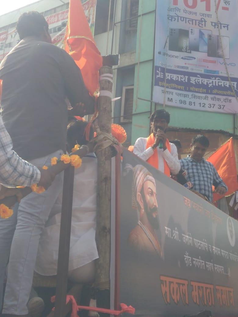 अशा घोषणाही देण्यात आल्या सदर कार्यक्रम यशस्वी करण्यासाठी सकल मराठा समाज दौंड शहर व तालुका यांचे मोठे योगदान मिळाले.