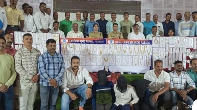 या टोळी बाबत पुणे पौंड यवत मुळशी येथे असल्याची माहिती मिळाल्यावर सातारा स्थानिक गुन्हे अन्वेषण विभागाचे पोलीस निरीक्षक अरुण देवकर यांनी सहायक पोलीस निरीक्षक रमेश गर्जे, सहायक पोलीस निरीक्षक सुधीर पाटील, पोलीस उपनिरीक्षक अमित पाटील, विश्वास शिंगाडे यांना आरोपींना अटक करण्याच्या सूचना दिल्या. त्यांनी सुरदेव सिलोन नानावत, (घोटावडे ता. मुळशी), राम धारा बिरावत (करमोळी ता. पौंड), परदुम सिलोन नानावत (घोटावडे ता. मुळशी) यांना ताब्यात घेऊन चौकशी केली. घरफोडया करुन सोन्या- चांदीचे दागिणे व रोख रकमा चोरी केल्या असल्याचे सांगून सदरची सोन्या चांदीचे दागिणे संपर्कातील साथीदार वामन नंदू राठोड (रा. फंड वस्ती रांजनगाव जि.पुणे), व वाल्मीक रामभाऊ शेखावत, (रा. पाटस, ता.दौंड, जि. पुणे) यांच्या मदतीने अहमदाबाद राज्य गुजरात येथील एका महिला सोनार तसेच सोनपालसिंग नारायणसिंग रजपूत व प्रदिप आसनदास खटवानी यांना विकले असल्याचे सांगीतले. आरोपींनी दिलेल्या माहिती प्रमाणे स्थानिक गुन्हे शाखेचे तपास पथक तात्काळ अहमदाबाद राज्य गुजरात येथे रवाना झाले व तेथून महिला सोनार व प्रदिप आसनदास खटवानी यांना ताब्यात घेतले व दोघांनाही सदर दागिने गुजरात राज्यात जावून ज्या सोनारांकडे गहाण ठेवले होते त्या सोनारांचेकडून गुन्हयात चोरीस गेलेले सोन्या चांदीच्या दागिण्यांपैकी, चालू बाजारा भावाप्रमाणे ६३ लाख ३० हजार ५८० रू. किंमतीचे १०३ तोळे वजनाचे सोन्याचे दागिने व तीन लाख ८८ हजार ५०० रुपये किंमतीचे ५ किलो वजनाचे चांदीचे दागीने सातारा येथून परराज्यात गुजरात येथे जाऊन हस्तगत करण्याची विक्रमी कामगिरी केलेली असल्याची माहिती त्यांनी दिली.