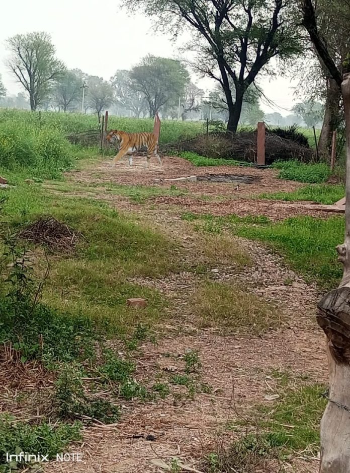 सूरौठ कस्बे के खेतों में बुधवार को टाइगर घूमने की सूचना से लोगों में हड़कंप मच गया। खेतों में टाइगर भ्रमण का फोटो सोशल मीडिया पर वायरल होने के बाद वन विभाग की टीम दोपहर को कस्बा सूरौठ में पहुंची तथा टाइगर की तलाश की। वन विभाग की टीम ने कस्बे के लोगों से भी बातचीत की।