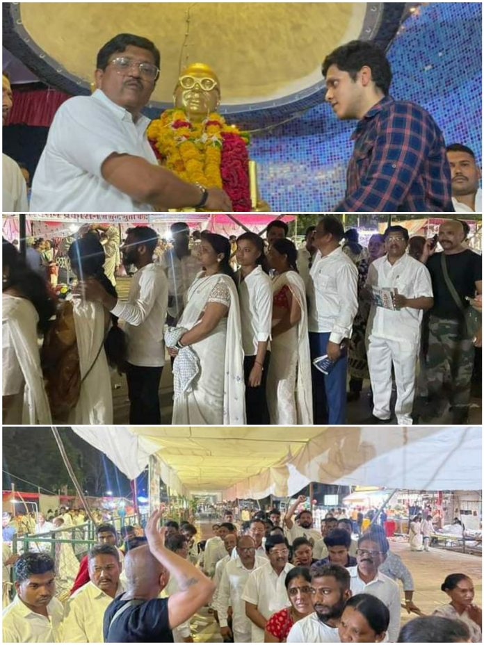 आद. आनंदराज आंबेडकर तब्बल दीड तास रांगेत उभे राहून डॉ. बाबासाहेब आंबेडकरांच्या पूर्णकृती पुतळ्याला हारार्पण करून अभिवादन केले…!