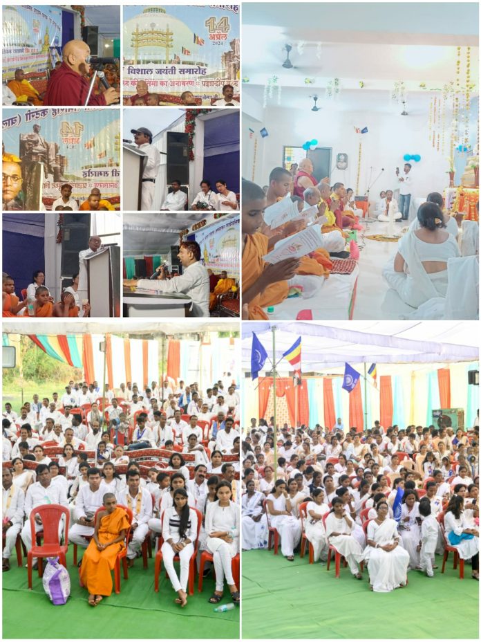 उक्त जयंती समारोह में तिब्बत से आए भदंत लोबझांग तेम्पा ने तिब्बती भाषा में बुद्ध और धम्म वंदना की. वहीं भंदत धम्म शिखर ने जगत विख्यात धम्मदूत भदंत संघरत्न मानके (जापान) की गैरमौजूदगी मेंपूज्य भदंत धम्म शिखर जी ने उनके आदेशानुसार जापानी में बुद्ध और धम्म वंदना की. जिसका उपासक-उपासिकाओं ने अनुसार किया. वहीं पहली बार अंबेडकर जयंती समारोह में श्रामणेरों के द्वारा शांति रैली भी निकाली गई. बस स्टैंड स्थित बी.आर. अंबेडकर जी की प्रतिमा के समक्ष वंदना के बाद श्रामणेरों ने शांति रैली निकाली. जिसका नेतृत्व भंते धम्म शिखर ने किया. भदंत लोबझांग तेम्पा, क्रांतिकारी भंते विनाचार्य रथ पर सवार थे. कार्यक्रम के उदघाटन पूज्य भदंत लोबझांग तेम्पा ने कहा भारत विश्व गुरु बुद्ध धम्म की वजह से है हम तिब्बत के लोगों ने बुद्ध धम्म का प्रचार प्रसार तिब्बती भाषा में ग्रथो की रचना कर किया है पूज्य भदंत धम्म शिखरजी (बालाघाट)ने कहा की बुद्ध अम्बेडकर मिशन ही से मानव का कल्याण संभव है भंते विनाचार्य (लखनऊ) ने कहा परम् पूज्य डाक्टर बाबा साहब अम्बेडकर एक नाम नही एक क्रांतिकारी परिवर्तन का दूसरा नाम है विशेष अथिति एस एल गेडाम ने कहा की महिला पुरुषो युवाओं के अथक प्रयासों से ही जनमानस तक बुद्ध अम्बेडकर मिशन को पहुंचाया जा सकता है