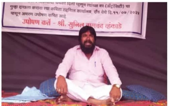 दौंड मध्ये बिल्डर यांच्या विरोधात फसवणूकी व ॲट्रॉसिटी गुन्हा दाखल करा.उपोषण करते सुनिल व्हंकाडे