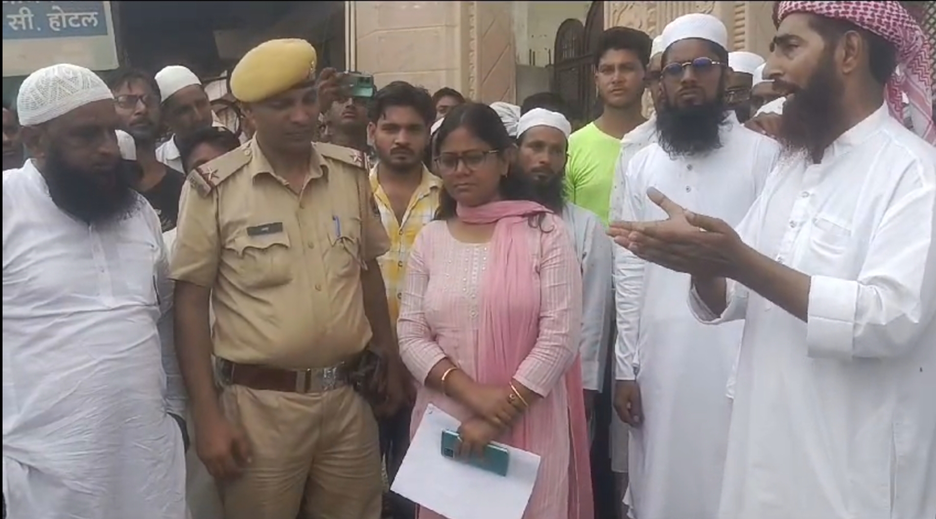 मोहम्मद साहब के खिलाफ अपमानजनक टिप्पणी करने वाले महाराष्ट्र के रामगिरी नामक व्यक्ति के खिलाफ कानूनी कार्रवाई की मांग को लेकर आज जमीयत उलेमा ए हिंद की ओर से राष्ट्रपति के नाम तहसीलदार को ज्ञापन सौंपा गया है। जमीयत उलेमा ए हिंद के तहसील सदर हाफिज बाबुद्दीन के नेतृत्व में मुस्लिम समाज के सैकड़ो लोग आज शुक्रवार को दोपहर 3:00 बजे हिंडौन सिटी के करौली रोड स्थित ईदगाह गेट पर एकत्रित हुए और नारेबाजी करते हुए हिंडौन सिटी की तहसीलदार को राष्ट्रपति के नाम ज्ञापन सौंप कर विगत दिनों महाराष्ट्र के नासिक में सार्वजनिक मंच पर इस्लाम धर्म के पैगंबर मोहम्मद साहब के विरुद्ध अपमानजनक टिप्पणी करने वाले रामगिरी नामक व्यक्ति की गिरफ्तारी की मांग की।इस अवसर पर शहर के इमाम हाफिज शफी,मुफ्ती अब्दुल हमीद,मुफ्ती तालिब,मुफ्ती मौलवी आरिफ,हाफिज सईद,हाफिज आशिक इलाही,हाफिज हाशिम,हाफिज निजामुद्दीन,मौलाना मुजाजिद, पूर्व उपसभापति नफीस अहमद, वक्फ कमेटी सदर बाबुद्दीन शाह,पार्षद इमरान,पार्षद कमरूद्दीन,समाजसेवी बरकत चौधरी,आमिर कुरेशी,सद्दाम कुरेशी,शर्फुद्दीन चौधरी, सहित दर्जनों लोग मौजूद रहे। किसी की भी धार्मिक भावनाओं को ठेस पहुंचाने वालों पर कड़ी कानूनी कार्रवाई होनी चाहिए ।