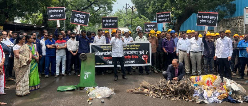 यावेळी कचरा रस्त्यावर फेकून कचऱ्याची होळी करण्यात आली आणि पुढील काळामध्ये सातत्याने कचरा उचलला न गेल्यास उद्योजक कचरा रस्त्यावर टाकतील हा इशारा देण्यात आला परिसरामध्ये कचऱ्याची समस्या गंभीर बनल्यामुळे अनेक प्रश्न निर्माण झाले असून कचरा रस्त्यावर टाकला तर कारवाई आणि कंपनीत ठेवला तर रोगराई ही अवस्था सध्या एमआयडीसीची झाली आहे. एमआयडीसी मध्ये उद्योजकांना कंपन्यांना खाजगी गाड्यांना पैसे देऊन कचरा देण्याची वेळ आली असून कंपन्यांमध्ये मोठ्या प्रमाणात कचरा साचून राहिल्यामुळे कामगारांच्या आरोग्याचा मोठा गंभीर प्रश्न निर्माण झाला असून अनेक कंपन्यांमध्ये कामगारांना डेंगू मलेरिया, चिकनगुनिया यासारखे आजार झाले आहेत. परंतु कंपन्यात कचरा साचू देण्यामागे नक्कीच भंगार व्यवसायिकांचा मोठा हात असून कंपन्यांमधील कचरा भंगार व्यवसायिक सुद्धा उचलत आहेत, कारण या कचऱ्यातून त्यांना मोठ्या प्रमाणात भंगार साहित्य हे मिळते आणि कदाचित या संपूर्ण प्रकरणात कुठेतरी भ्रष्टाचाराचा मोठा वास येताना दिसतो आणि याचा परिणाम कामगारांच्या कामावर झाला असून अनेक कामगार हे सातत्याने आजाराने सुट्ट्या घेतात. फोरम ऑफ स्मॉल स्केल इंडस्ट्रीज असोसिएशनने मागणी केली आहे की परिसरात छोट्या घंटागाड्या चालू कराव्यात व प्रत्येक कंपनीचा (कंपनी छोटी असो किंवा मोठी) कचरा हा घेतला पाहिजे जेणेकरून परिसरामध्ये स्वच्छतेचे साम्राज्य निर्माण होईल परिसरात अनेक देशी-विदेशी कंपन्यांचे प्रतिनिधी येत असतात. परंतु परिसरामध्ये प्रत्येक ठिकाणी घाणीचे एवढे सामराज्य वाढले आहे की परिसरात काही ठिकाणी तर कामगार वर्गाला कंपनीत किंवा बाहेर बसून जेवताही येत नाही. गेली कित्येक वर्ष एमआयडीसी मध्ये सातत्याने स्वच्छता असायची परंतु गेल्या पाच वर्षांमध्ये एमआयडीसीमध्ये प्रत्येक ठिकाणी कचऱ्याचे ढीग झालेले आढळून येतात महानगरपालिकेने कचरा स्वच्छतेसाठी ब्रँड अँबेसिडर नेमले असून या ब्रँड अँबेसिडरच एमआयडीसी कडे लक्षच नसल्याचे दिसून येते कुठेतरी शासन उद्योजकांचा पैसा फक्त लुबाडणे चालू असून हा प्रकार थांबला पाहिजे अन्यथा येथील कंपन्यांना सातत्याने तीव्रतेचे आंदोलन उपोषणे हा मार्ग पत्करल्याशिवाय राहणार नाही. असे अध्यक्ष श्री. अभय भोर यांनी आज झालेल्या आंदोलणादरम्यान सांगीतले. यावेळी अनेक उद्योजकांनी आपले विचार व्यक्त केले आणि महानगरपालिका प्रशासनावर नाराजी व्यक्त करण्यात आली. यावेळी अध्यक्ष श्री. अभय भोर, उद्योजक श्री. जसबिंदर सिंग, श्री. मिलिंद काळे, श्री. प्रवीण चव्हाण, श्री. कृष्णा वाळके, श्री. सचिन भगत, श्री. राहुल गरड, श्री. नितीन शिर्के, श्री. अमोल स्वामी, श्री. इसाक पठाण, उद्योजिका दुर्गा भ