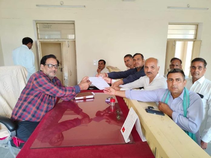 उप तहसील मुख्यालय लखनपुर में खरीफ फसल के नुकसान के मुआवजे की मांग को लेकर समाजसेवी एडवोकेट महेश लखनपुर के नेतृत्व में किसानों ने उप तहसील कार्यालय पर तहसीलदार कैलाश गौतम को ज्ञापन सौंपा। समाजसेवी एडवोकेट महेश लखनपुर ने बताया कि अत्यधिक बारिश से खरीफ की फसल ज्वार, बाजरा, ढ़ेचा, चरी और अन्य फसल गलकर पूरी तरह नष्ट हो चुकी हैं। जिससे किसानों के सामने खाद्यान्न एवं पशुओं के लिए चारे की अत्यधिक समस्या आ रही है। अतिवृष्टि से उप तहसील मुख्यालय लखनपुर क्षेत्र के 44 रेवेन्यू गांव के किसान पूरी तरह बर्बाद हो चुके हैं। प्रत्येक काश्तकार सरकार द्वारा प्रदान की जाने वाली सहायता की ओर देख रहा है। ऊधर, तहसीलदार कैलाश गौतम ने शाहपुर, लखनपुर, टोहिला, अटारी, बछामदी, गगवाना आदि आधा दर्जन गांव का दौरा कर फसल खराबे का जायजा लिया। इस मौके पर भानूप्रताप मुद्गल,गिरदावल उमेश शर्मा,पटवारी मनोज,सुशील शर्मा उर्फ हंडू अटारी,पुष्पेंद्र इंदोलिया,उपेंद्र नगला,समयसिंह दयावली,रामसिंह, सूरज बघेल आदि ग्रामीण उपस्थित रहे।