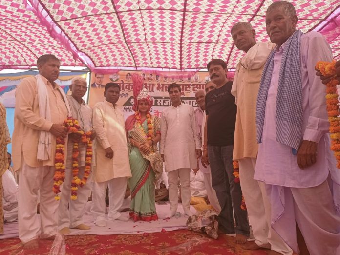 लोकसभा भरतपुर सांसद संजना जाटव पहली बार नदबई विधानसभा क्षेत्र की ग्राम पंचायत नाम गुदावली की पावन धरा आगमन पर हार्दिक स्वागत एवं अभिनंदन सम्मान समारोह कार्यक्रम का आयोजन 22 सितंबर 2024 रविवार को बड़ी धूमधाम से किया गया।कार्यक्रम के आयोजन कर्ता कुंवर भूपेंद्र सिंह फौजदार पंचायत समिति सदस्य के सौजन्य से सांसद संजना जाटव को 51 हजार रुपए की माला एवं चांदी का मुकट पहनाकर भव्य स्वागत, अभिनंदन कर सम्मान किया गया। जाट नेता नैम सिंह फौजदार ने नदबई विधानसभा क्षेत्र की जनता को संबोधित कहा कि इस बार भरतपुर लोकसभा का चुनाव नीति अनीति,झूंठ एवं सत्य की लड़ाई, गरीब और अमीर की लड़ाई को लेकर हुआ। धौलपुर और भरतपुर के जाटों के साथ भारतीय जनता पार्टी ने हमारे युवाओं के साथ आरक्षण के नाम से छुरा घोपने का काम किया। जाट समाज के द्वारा तमाम आंदोलन करने के बाद बीजेपी सरकार ने धौलपुर भरतपुर के जाटों को आरक्षण को दरकिनार किया। देश की बहुत बड़ी पंचायत संसद में भरतपुर लोकसभा सांसद संजना जाटव ने सबसे पहले केंद्र में आरक्षण को लेकर धौलपुर,भरतपुर के जाटों की आरक्षण की मांग रखी। अंबेडकर वेलफेयर सोसाइटी जिला अध्यक्ष विजेंद्र सिंह उर्फ बंटी आजाद ने लोगों को संबोधित करते हुए कहा कि भरतपुर लोकप्रिय सांसद संजना जाटव हमेशा सबकी आवाज संसद में उठाती है। भरतपुर धौलपुर में केंद्र में जाटों को आरक्षण नही है उसको लेकर सांसद संजना जाटव ने संसद में आबाज उठाई है। बीजेपी अपनी तू तू में में की लड़ाई लड़ रही है। बीजेपी ने अभी तक कोई विकास कार्य नही किया है। जिस समाज को आरक्षण की जरूरत नहीं है उस समाज को बिना मांगे आंदोलन के बिना आरक्षण दिया जा रहा है। मंच संचालन अशोक केशावत ने कहा कि भूपेंद्र सिंह फौजदार डायरेक्टर ने गांव नाम में डॉ भीमराव अम्बेडकर पार्क निर्माण के लिए साढ़े छह लाख रुपए की जमीन खरीदकर जाटव समाज को चिन्हित करके दी। पूर्व विधायक जोगेंद्र अवाना ने दस लाख रुपए सोलर डीप बोर के लिए राशि स्वीकृत करके दी लेकिन भेदभाव के कारण वो पैसा अभी तक लग नही पाया। मुख्य अतिथि संजना जाटव ने भरतपुर लोकसभा एवं नदबई विधानसभा क्षेत्र की ग्राम पंचायत नाम गुदावली की समस्त जनता जनार्दन को मान सम्मान करने पर तहे दिल से आभार व्यक्त किया। सांसद संजना जाटव ने कहा कि आपके प्यार और आशीर्वाद एवं जन समर्थन की वजह से मैं सांसद बनी हू।सांसद ने गांव नाम में सांसद कोटे से सामुदायिक भवन निर्माण कराने की घोषणा की।सांसद ने कहा कि मैं हमेशा आपकी सेवा में समर्पित हू। आपकी समस्या के लिए 24 घंटे दरवाजे खुले हुए हैं। आप लिखित में या मौखिक रूप से मुझे कभी भी अपनी समस्या के बारे में अवगत करा सकते हैं। मेरे क्षेत्र की जनता जनार्दन देवता तुल्य है। सांसद 
