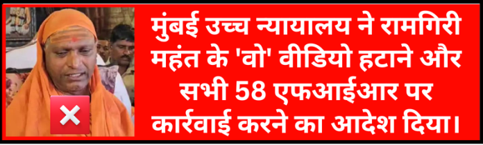मुंबई, 3 (मूकनायक): मुंबई उच्च न्यायालय ने सोमवार को महाराष्ट्र पुलिस को महंत रामगिरी महाराज के वीडियो हटाने का आदेश दिया है। इन वीडियो में उन्होंने पैगंबर मोहम्मद के खिलाफ कुछ आपत्तिजनक टिप्पणियाँ की थीं, जिससे मुस्लिम समुदाय की भावनाएं आहत हुई हैं।