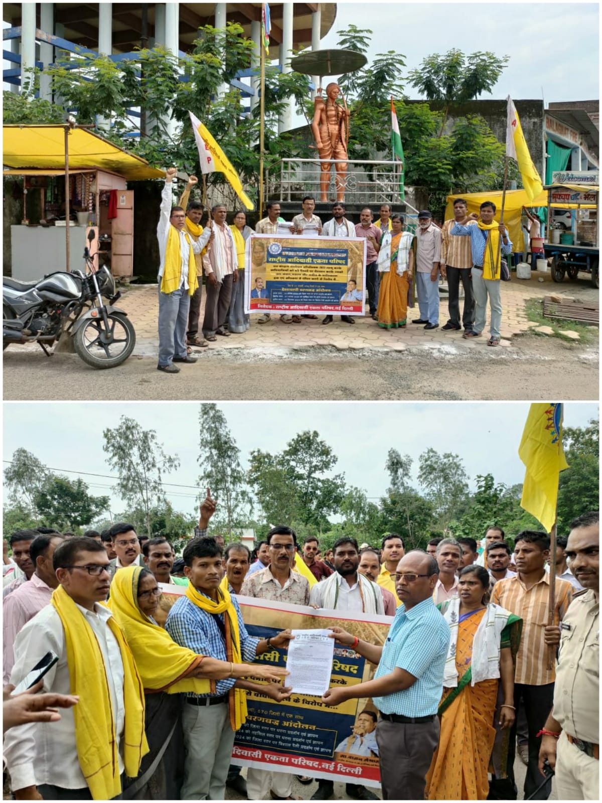 राष्ट्रिय आदिवासी एकता परिषद के द्वारा जिला मुख्यालय पहुंचकर कलेक्टर महोदय के माध्यम से राष्ट्रपति जी के नाम ज्ञापन दिया गया। जिसमें जिसमें राष्ट्रीय आदिवासी एकता परिषद के जिला अध्यक्ष सुशील कुशराम जी राष्ट्रीय पिछड़ा वर्ग मोर्चा के राष्ट्रीय सचिव माननीय रामदास जी ठोकर बहुजन क्रांति मोर्चा के जिला संयोजक सदाशिव हरिनखेडे जी राष्ट्रीय किसान मोर्चे के अध्यक्ष भुवनेश्वर पटले जी जितेंद्र गोयल बहुजन मुक्ति पार्टी जिला प्रभारी ।जिला अध्यक्ष भारत मुक्ति मोर्चा के जिला अध्यक्ष केडीएल चौरे बाबूजी उपस्थित रहे। राष्ट्रीय महिला मोर्चे की तहसील अध्यक्ष पंचकूला मेश्राम मैडम और बुद्धिस्ट इंटरनेशनल नेटवर्क की जिला प्रभारी आदरणीय नर्मदा नागवंशी मैडम जी उपस्थित रहे साथ ही विमल मेश्राम जी मुनेश्वर देश भरतार भारतीय बेरोजगार मोर्चा जिला संयोजक बालाघाट एवं अन्य कार्यकर्ता बहुत बड़ी तादाद में उपस्थित रहे।