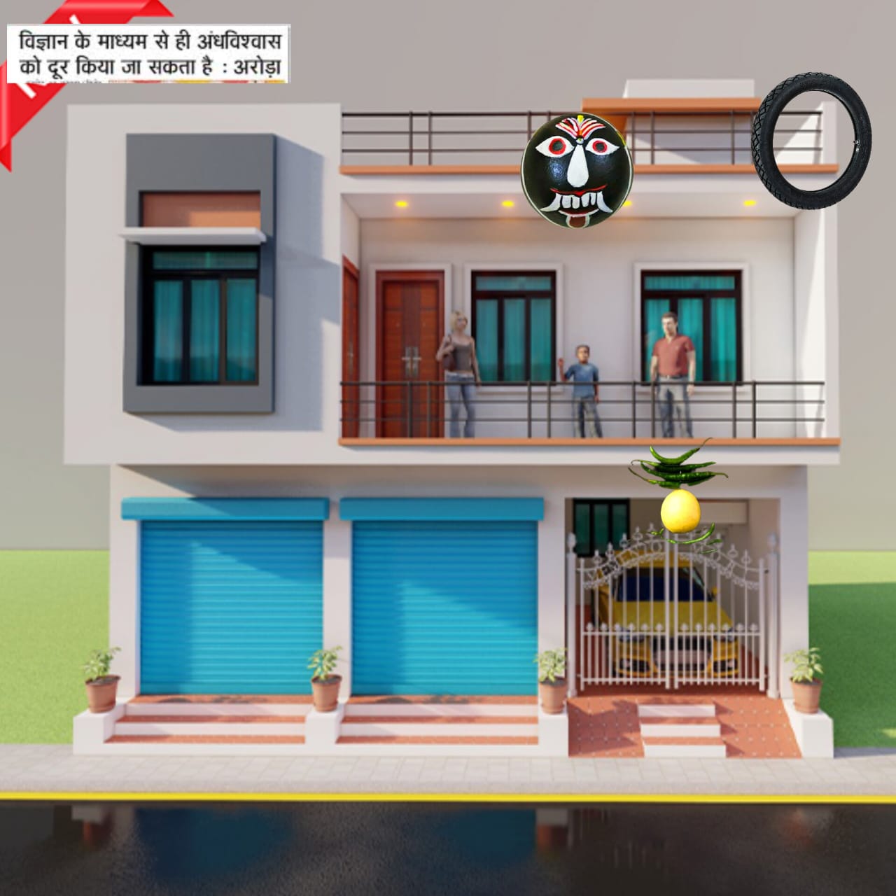 नींबू-मिर्च लटके दिखाई देते हैं