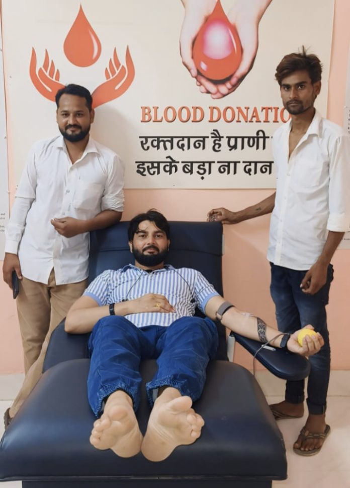 हिंडौन उपखंड क्षेत्र के गांव चिनायटा निवासी पत्रकार अजीम खान चिनायटा ने जानकारी देते हुए बताया कि गांवडी मीणा निवासी एक गर्भवती महिला रक्त की वजह से जिंदगी से जंग लड रही थी महिला पिंकी पत्नी विकेश का हिमोग्लोबिन 6.02 रह गया। पिंकी को दो यूनिट ब्लड की जरूरत थी। जिसकी सूचना सोशल मीडिया के माध्यम से नगर परिषद पार्षद भारत कुमार को लगी। इस पर भारत कुमार ने तुरंत ब्लड बैंक पहुंचकर रक्तदान कर गर्भवती महिला पिंकी पत्नी विकेश की जान बचाई। इस पर मरीज के परिजनों ने नगर परिषद पार्षद भारत कुमार का आभार व्यक्त किया। इस पर नगर परिषद पार्षद भारत कुमार ने कहा कि हम सभी को मानव सेवा के लिए आगे आना चाहिए और समय-समय पर रक्तदान करते रहना चाहिए इससे हमारा शरीर के हिमोग्लोबिन का बैलेंस सही रहता है। रक्तदान सबसे बड़ा दान है। नगर परिषद पार्षद लोकेश कुमार ने भी पिंकी के लिए एक यूनिट दान किया।