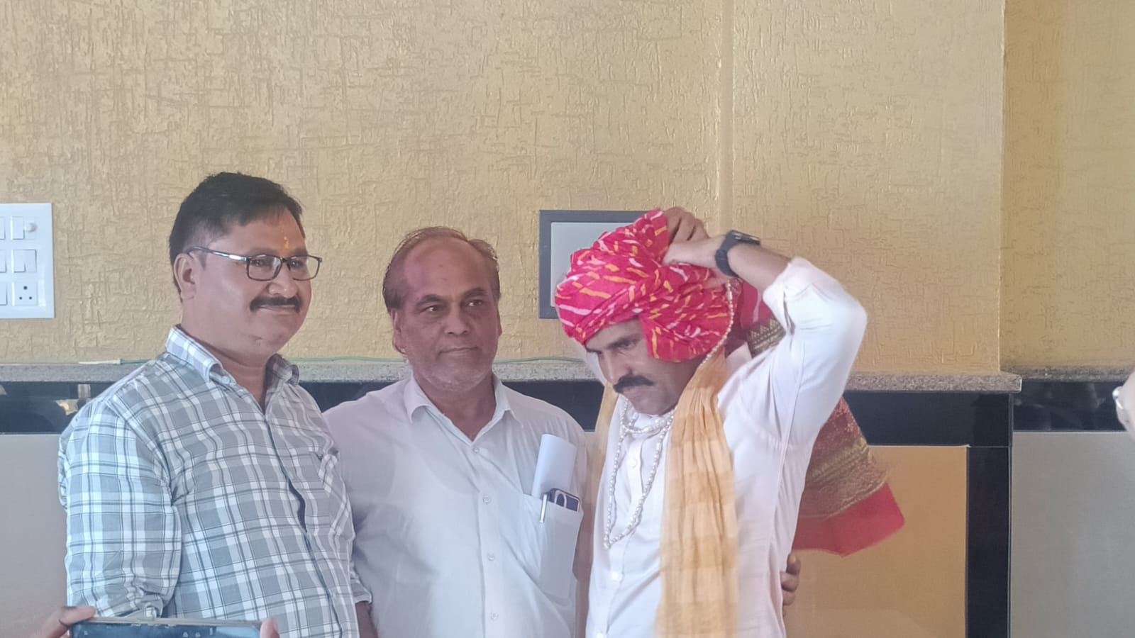 करौली के सूचना एवं जनसंपर्क अधिकारी रहे हरिओम गुर्जर इन दिनों भरतपुर के सूचना और जनसंपर्क विभाग में संयुक्त निदेशक पद पर कार्यरत हैं। पत्रकारों के विशेष आग्रह पर गुरुवार को हिंडौन पहुंचे हरिओम गुर्जर का सभी पत्रकारों ने माला और साफा पहनाकर और स्मृति चिन्ह भेंटकर अभिनंदन किया। स्वागत और सम्मान करने वालों में वरिष्ठ पत्रकार चंद्रकेतु बेनीवाल, प्रकाश चंद्र शर्मा, दीनदयाल सारस्वत, राजेश जैन, महेंद्र शर्मा, हिंडौन प्रेस के अध्यक्ष सुरेश शर्मा, राकेश अग्रवाल, नीरज गर्ग, ओमप्रकाश सुमन, मनीष बंसल, शुभम तिवाड़ी, विष्णु कुमार उपाध्याय, जयप्रकाश शुक्ला, कृष्ण मुरारी राजौरा, अशोक शौकी, चंदू शर्मा राजेंद्र जांगिड़, गणेश सिंह सहित कई पत्रकार शामिल रहे। सभी ने पूरे उत्साह के साथ संयुक्त निदेशक हरिओम गुर्जर का भव्य अभिनंदन किया और पत्रकारों के हित में उनकी सेवाओं की सराहना की।