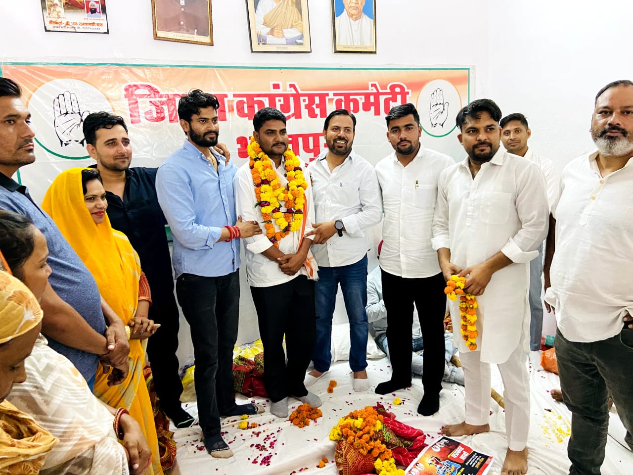 10 अक्टूबर गुरुवार को यूथ कांग्रेस की मासिक बैठक जिला कार्यालय भरतपुर में जिला अध्यक्ष पुष्पेंद्र सिंह बन्नो गुर्जर के नेतत्व मे आयोजित की गई। बैठक में जिला प्रभारी छगनलाल कुलदीप पधारे। यूथ कांग्रेस जिला महासचिव कुंवर पुष्पेंद्र सिंह गोठरा द्वारा जिला प्रभारी छगनलाल कुलदीप का 31 मी का साफा एवं माला पहनाकर भव्य स्वागत किया भरतपुर के ऊर्जावान जिला अध्यक्ष पुष्पेंद्र गुर्जर का 21 मी का साफा पहनाकर भव्य स्वागत किया गया एनएसयूआई के जिला अध्यक्ष का माला एवं साफा पहनाकर भव्य स्वागत किया गया इस अवसर पर प्रभारी एवं जिला अध्यक्ष ने सभी नवीन कार्यकारिणी का स्वागत सम्मान कर दिशा निर्देश दिए एवं 16 अक्टूबर को दिल्ली मैं ज्यादा से ज्यादा पहुंचने का दिशा निर्देश दिए। कार्यक्रम में राकेश कुमार समाजसेवी ,सत्यकी देशवाल, अभिषेक, मनोज गुर्जर झालाटाला, मक्खन झालाटाला, राहुल प्रधान झालाटाला,गौरव यादव, भगत यादव आदि युथ कांग्रेस के पदाधिकारी एवं कार्यकर्ता मौजूद रहे।
