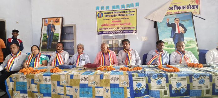 राजस्थान शिक्षक संघ अंबेडकर का जिला स्तरीय शैक्षिक सम्मेलन जिला बालोतरा का मेघवाल शिक्षा एवं विकास संस्थान कल्याणपुर में आयोजित किया गया।मुख्य अतिथि विकास अधिकारी चंपालाल देवड़ा, कार्यक्रम की अध्यक्षता मुख्य ब्लॉक शिक्षा अधिकारी बुद्धाराम चौधरी, विशिष्ट अतिथि मुख्य ब्लॉक शिक्षा अधिकारी विष्णु कुमार लोहिया , अतिरिक्त मुख्य ब्लॉक शिक्षा अधिकारी सुरेश कुमार डांगी, नायब तहसीलदार कल्याणपुर के भीमाराम पांचाल, पुरस्कृत शिक्षक फोरम बालोतरा बाड़मेर के जिला अध्यक्ष सालगराम परिहार, अजाक अध्यक्ष गणेश राम बुनकर, भीमाराम देवपाल, स्टेट अवॉर्डी शिक्षक भेरूलाल नामा, अतिथि के रूप में उपस्थित रहे।