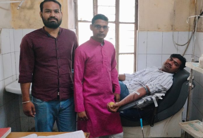 करौली जिला अस्पताल आईसीयू में भर्ती एक बच्ची काजल, उम्र 13 साल, ब्लड ग्रुप ओ पाज़िटिव, निवासी कोटवास के शरीर में हीमोग्लोबिन की मात्रा बहुत कम रह गई थी और ऐसी स्थिति में परिवार में कोई भी सदस्य देने वाला नहीं होने के कारण जिसकी सूचना करई निवासी ब्लड टैंकर पुष्पेन्द्र गारूवाल को लगी तो उन्होंने गांव करई से बाइक 45 किलोमीटर की दूरी तय करके करौली जिला अस्पताल ब्लड बैंक में पहुंचे और उन्होंने अपने जीवनकाल का 28 वां स्वैच्छिक रक्तदान किया और पीड़ित बच्ची की जान बचाई ।गारूवाल ने बताया कि रक्त के अभाव में किसी की जान नही जानी चाहिए, हम सभी को अधिक से अधिक रक्तदान करना चाहिए। पुष्पेन्द्र गारूवाल करई रक्तदान और सामाजिक कार्यों में उत्कृष्ट कार्य करने पर जिला प्रशासन करौली द्वारा हो चुके हैं पुर्व में सम्मानित।इस मौके पर नरेन्द्र गारूवाल कनिष्ठ सहायक, बृजेश कोटवास आदि उपस्थित थे ।