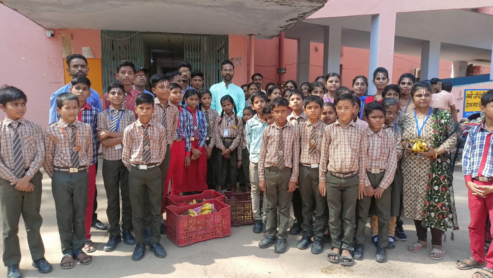 स्कूली छात्रों सहित अध्यापकों ने अस्पताल मैं किए फल वितरण