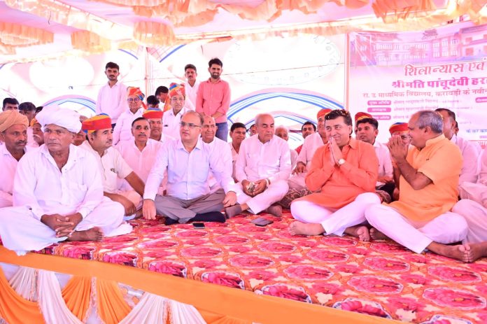 स्वर्गीय पांचू देवी सारण की स्मृति में सारण परिवार द्वारा स्कूल भवन निर्माण के लिए साढे 3.5 करोड रुपए दान कर महान कार्य किया गया । स्व पांचू देवी /हरलाल सारण द्वारा रा.उच्च मा.विद्यालय करावड़ी मै भूमि पूजन व शिलान्यास के अवसर पर राज्य मंत्री के के बिश्नोई एवं पधारे हुए सभी मेहमानों का मान सम्मान व बहुमान करने के लिए स्व हरलाल सारण परिवार के सदस्य वकील भगवानाराम , पी ई टी रतनाराम, ठेकेदार महिपाल सारण तथा पूरे परिवार को बहुत बहुत बधाई एवं उज्जवल भविष्य की हार्दिक शुभकामनाएं व्यक्त करते है आप जैसे महान भामाशाह को कोटि कोटि प्रणाम करते है आपने विद्यामंदिर में 3.50 करोड़ का दान करके बहुत बड़ा महान कार्य करके आपने इस विद्यालय में आने वाली पीढी पढ़कर अपने पैरों पर खड़ा होगा अपने भविष्य को सवारेगा उसकी दुआएं आप ओर आपके परिवार को युगों युगों तक मिलती रहेगी । भेराराम गोदारा प्रतिनिधि प. स.सदस्य करावड़ी एवं अध्यक्ष बिश्नोई समाज सेवा ट्रस्ट अहमदाबाद