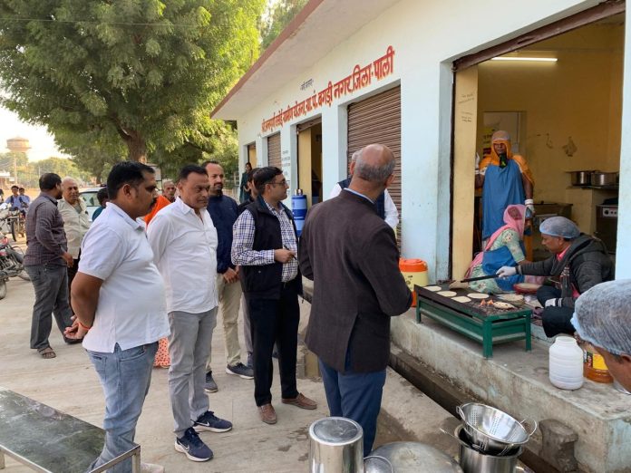 अन्नपूर्णा रसोई का अतिरिक्त संभागीय आयुक्त ने बगड़ी नगर जाकर अन्नपूर्णा रसोई केंद्र का जायजा लिया अन्नपूर्णा रसोई संचालक आशा चौहान व कंप्यूटर ऑपरेटर किरण गोयल सहित स्टाफ की जानकारी ली व अतिरिक्त संभाग्य आयुक्त ने कहा कि रसोई योजना सही तरह से संचालित हो रही है खाना खाकर रसोई की गुणवता जांची रसोई योजना की सराहना की और कहां की इस रसोई योजना से अन्य रसोई योजना वाले भी सिख ले रसोई योजना के कार्यकर्ता कुक गवरी देवी प्रजापत कविता देवी प्रजापत पीराराम प्रजापत जसराज इस मौके पर गांव के मुख्य सरपंच भुंन्डाराम जी सीरवी ने अतिरिक्त संभागीय आयुक्त को ग्राम पंचायत में माला व साफा पहनाकर भव्य स्वागत किया इस मौके पर ग्राम पंचायत के व्यवस्था की जानकारी ली जिसमें अन्नपूर्णा रसोई की जानकारी ली ग्राम विकास अधिकारी गुलाबचंद शर्मा महेंद्र मेवाड़ा तरुण मेवाड़ा घनश्याम मेवाड़ा वअर्जुन भानावत पटवारी चंपादान चारण व अन्य ग्रामीण मौजूद थे वहीं पर विकास अधिकारी सोजत ने रसोई योजना का जायजा लिया और कहां की रसोई योजना व्यवस्थित तरीके से चल रही है टोकन भी व्यवस्थित तरीके से मिल रहा हैं गांव के लोगों को भी कोई प्रकार की परेशानी नहीं हो रही सब व्यवस्थित तरीके से चल रहा है