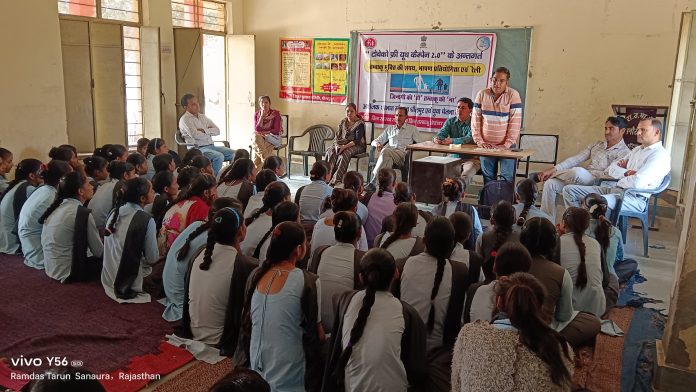 जिला धौलपुर के बाड़ी में 19 नवंबर 24 को राजकीय उच्च माध्यमिक विद्यालय सनौरा में तंबाकू मुक्ति पर हुई कार्यशाला, में प्रभात संस्थान धौलपुर एवं युवा चेतना समिति बाड़ी धौलपुर के संयुक्त तत्वाधान में आयोजन किया गया। प्रभात संस्थान के निदेशक राकेश कुमार ने बताया कि टोबेको फ्री यूथ कैंपेन 2.0 पूरे भारतवर्ष में चलाया जा रहा है जिसका उद्देश्य तंबाकू मुक्त, गांव, हर विद्यालय से लेकर अपने जिले और राज्य से लेकर अपने देश को तंबाकू मुक्त बनाना है। आने वाली पीढ़ी को तंबाकू की दुष्प्रभावों से बचाना है। राजस्थान में लगभग आधी आबादी युवाओं की है, क्षेत्रफल की दृष्टि से भी सबसे बड़ा राज्य है। धूम्रपान के दुष्प्रभाव के इन आंकड़ों के माध्यम से देख सकते हैं।कि पूरे भारतवर्ष में लगभग 15 लाख मौत धूम्रपान की वजह से हो जाती है। और जो लोग धूम्रपान करने के बाद धुआ बाहर छोड़ते हैं। उसके प्रभाव से लगभग 1 लाख लोगों की मौत हो जाती है। संस्था अध्यक्ष रामदास तरुण ने बताया कि अगर राजस्थान की बात करें, तो धूम्रपान से प्रत्येक दिन लगभग 200 मौतें हो जाती है। और साल भर में लगभग 80000 लोग धूम्रपान की वजह से अपनी जान गवा देते हैं। विद्यालय से 100 गज की दूरी में गुटखा तंबाकू बेचना दंडनीय अपराध है। और अगर विद्यालय परिसर में या सार्वजनिक स्थान पर कोई भी व्यक्ति धूम्रपान करते हुए, या बेचते हुए पाया जाता है, तो कानून के तहत ₹200 चालान कट सकता है। इस कार्यक्रम के मौके पर प्रधानाचार्य द्वारका प्रसाद मीणा ने सभी बच्चों को मीठी सुपारी , तंबाकू, बीड़ी …. या किसी भी प्रकार का धूम्रपान नहीं करने के लिए प्रेरित किया।प्रधानाचार्य द्वारिका प्रसाद मीणा सनौरा वालों ने सभी उपस्थित बच्चों को कहा के पहले में भी धूम्रपान करता था किंतु मेरे बच्चे ने मुझे तंबाकू छोड़ने के लिए प्रेरित किया और जिसकी वजह से, मैं आज धूम्रपान नहीं कर रहा हूं, आप भी अपने परिवार व परिचितों को धूम्रपान/ तंबाकू छोड़ने के लिए जरूर प्रेरित करें| अंत में सभी उपस्थित बच्चों ने कार्यशाला में संकल्प लिया। कि भविष्य में कभी भी धूम्रपान नहीं करेंगे, और अपने परिचितों को धूम्रपान छोड़ने के लिए प्रेरित करेंगे। साथ ही अपने विद्यालय को धूम्रपान मुक्त बनाने के लिए भी पूरा प्रयास करेंगे। इस अवसर पर संस्थान की ओर से राकेश कुमार, रामदास तरुण, राजेश, मनीष तथा जगदीश जाटव, मोहन सिंह मीणा, हरिराम मीणा, लक्ष्मी कुमारी, सुमेर गिरी, रघुवरी प्रसाद शर्मा, मुकेश कुमार वैष्णव, रणजीत सिंह, राम खिलाड़ी मीणा, ओंकार सिंह मीणा, सियाराम प्रजापत, विष्णु प्रसाद शर्मा, मौसम कुमार मीणा आदि उपस्थित रहे |