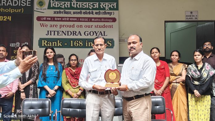 बाड़ी, 20 नवंबर 24 को किड्स पैराडाइज सीनियर सेकेंडरी स्कूल बाड़ी में आज तंबाकू मुक्ति के लिए एक महत्वपूर्ण संकल्प लिया गया। यह कार्यक्रम प्रभात संस्थान धौलपुर और युवा चेतना समिति बाड़ी के संयुक्त तत्वावधान में आयोजित किया गया, जिसका उद्देश्य युवाओं में तंबाकू सेवन के दुष्प्रभावों के प्रति जागरूकता बढ़ाना था। कार्यक्रम में प्रभात संस्थान के निदेशक राकेश कुमार ने बताया कि टोबैको फ्री यूथ कैंपेन 2.0 भारत भर में चलाया जा रहा है। उन्होंने राजस्थान में तंबाकू सेवन के आंकड़ों पर प्रकाश डाला, जिसमें बताया कि राज्य में लगभग 1 करोड़ 20 लाख लोग धूम्रपान या तंबाकू का सेवन करते हैं। इनमें से 60 लाख लोग बीड़ी, सिगरेट जैसी धूम्रपान सामग्री का सेवन करते हैं। राकेश कुमार ने यह भी बताया कि राजस्थान में तंबाकू और धूम्रपान के दुष्प्रभावों से हर साल लगभग 80,000 मौतें होती हैं, और धूम्रपान से होने वाली बीमारियों से लाखों लोग प्रभावित होते हैं। कार्यक्रम में अध्यक्ष रामदास तरुण ने तंबाकू और धूम्रपान के खिलाफ सख्त कानूनी प्रावधानों का उल्लेख करते हुए बताया कि विद्यालय परिसर से 100 गज की दूरी तक गुटखा या तंबाकू बेचना दंडनीय अपराध है। इसके अलावा, अगर कोई व्यक्ति सार्वजनिक स्थानों पर धूम्रपान करते हुए पाया जाता है, तो उसे ₹200 का जुर्माना भरना पड़ सकता है। कार्यक्रम के दौरान प्रधानाचार्य सुनील मितल ने बच्चों को प्रेरित किया और उन्हें तंबाकू, बीड़ी, सुपारी या किसी भी प्रकार के धूम्रपान से दूर रहने की शपथ दिलाई। उन्होंने कहा कि बच्चों के स्वास्थ्य के प्रति प्राथमिकता देनी चाहिए, और तंबाकू से दूर रहकर हम अपने भविष्य को स्वस्थ बना सकते हैं। अंत में सभी बच्चों, शिक्षकों और स्टाफ ने एक साथ तंबाकू मुक्त रहने का संकल्प लिया। सभी ने यह वादा किया कि वे खुद तंबाकू से दूर रहेंगे, बल्कि अपने परिवार और दोस्तों को भी इसके सेवन से बचने के लिए प्रेरित करेंगे। साथ ही, विद्यालय को तंबाकू मुक्त बनाने के लिए वे पूरी मेहनत करेंगे। इस अवसर पर राकेश कुमार, रामदास तरुण, राजेश और स्कूल का समस्त स्टाफ उपस्थित था। इसी कार्यक्रम के बीच में सस्था के अच्छे कार्य को देखते हुए, प्रधानाचार्य सुनील मित्तल एवं समस्त स्टाफ ने स्मृति चिन्ह भेंटकर संस्था के पदाधिकारी को सम्मानित किया।