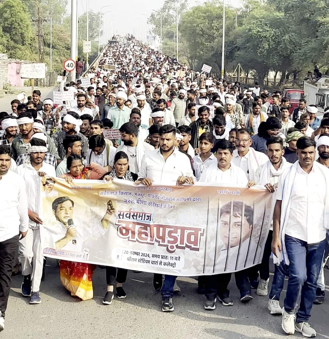 आज दिनांक 20 नवंबर 2024 को SDM थप्पड़ कांड में गिरफ्तार निर्दलीय प्रत्याशी नरेश मीणा की रिहाई को लेकर बारां में सर्व समाज के द्वारा एक विशाल रैली निकाली गई जिसमें लगभग 20 हजार लोग शामिल हुए