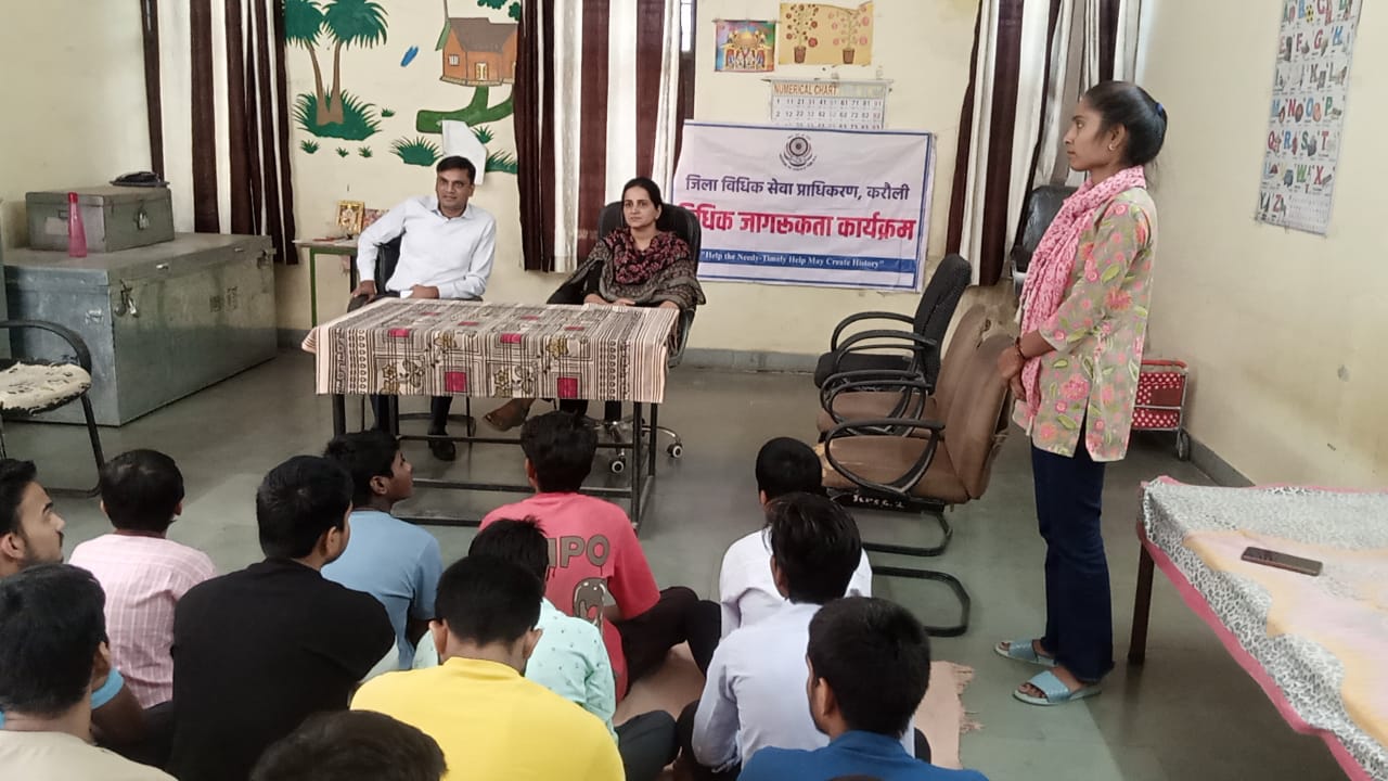 राजस्थान राज्य विधिक सेवा प्राधिकरण जयपुर के निर्देशानुसार आज 14 नवम्बर को बाल दिवस के अवसर पर राजकीय सम्प्रेषण एवं किशोर गृह करौली पर विधिक जागरूकता शिविर का आयोजन किया गया। शिविर में जिला विधिक सेवा प्राधिकरण की सचिव एवं अपर जिला एवं सेशन न्यायाधीश ममता चौधरी द्वारा उपस्थित बच्चों से सौहार्दपूर्ण वार्ता कर उनको मिलने वाली सुविधाओं व उनके अधिकारों के बारे में तथा बाल दिवस के बारे में बताया गया। इस अवसर पर अतिरिक्त मुख्य न्यायिक मजिस्ट्रेट देवेन्द्र कुमार, बाल कल्याण समिति के सदस्य फजले अहमद व अन्य स्टाफगण उपस्थित थे। अन्त में सचिव द्वारा बच्चों को फल वितरित किये गये।