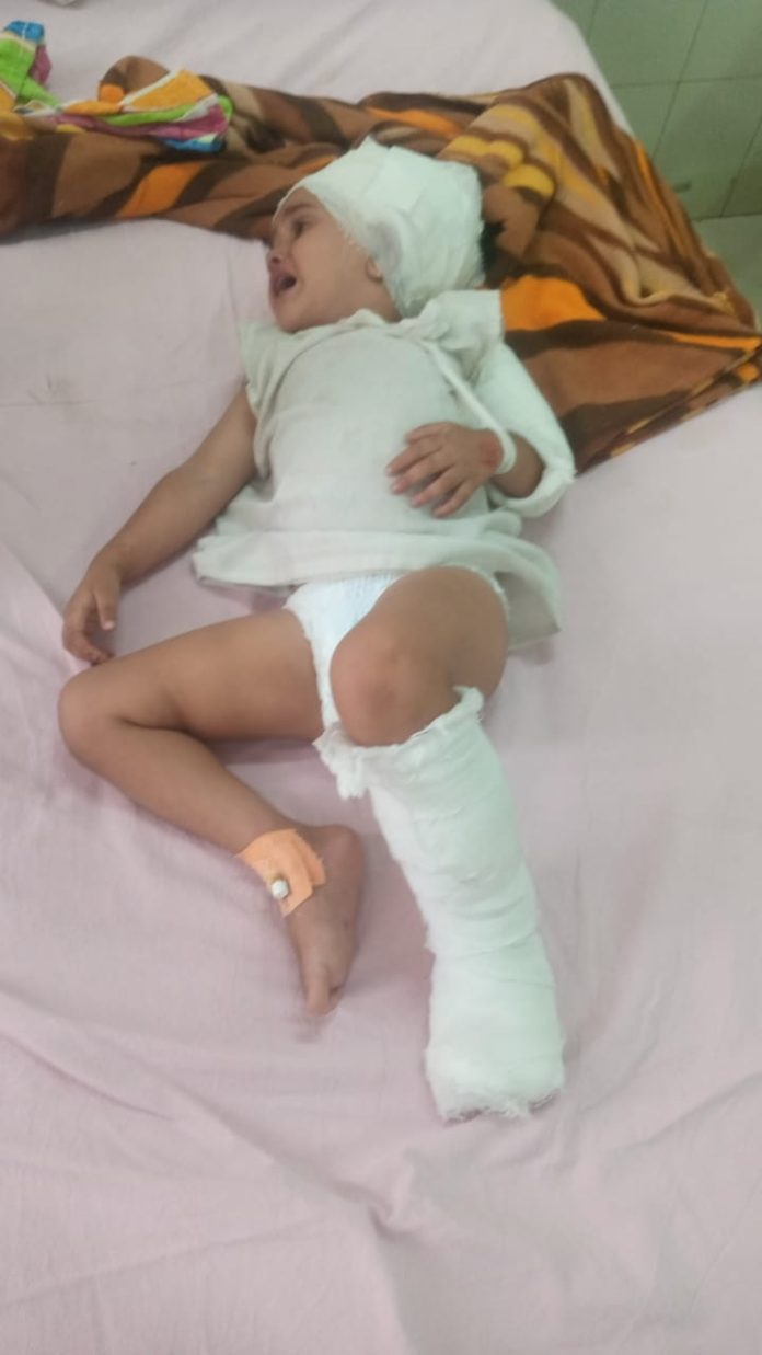 सूरौठ। कस्बे की जाटव बस्ती में बिजली का पोल गिरने से गंभीर रूप से घायल हुई तीन वर्षीय बलिका नित्या जाटव जयपुर के सवाई मानसिंह अस्पताल में पिछले 14 दिन से जिंदगी और मौत से संघर्ष कर रही है। कस्बे में जटवाड़ा रोड के पास नई कॉलोनी में निवास करने वाले अजय जाटव ने बताया कि उसकी 3 वर्षीय पुत्री नित्या जाटव गत 28 अक्टूबर को घर के बाहर खेल रही थी अचानक रास्ते में स्थित बिजली का पोल टूट कर बालिका नित्या के ऊपर गिर गया। जिससे बालिका नित्या गंभीर रूप से घायल हो गई। बालिका नित्या के सिर व हाथ पैरों में गंभीर चोटें आने पर उसे जयपुर के सवाई मानसिंह अस्पताल में भर्ती करवाया गया। नन्ही सी बालिका नित्या के हाथ एवं पैरों में तीन-तीन स्थानों पर फैक्चर आया है। बालिका के पैर की दो उंगली भी कट गई है। बालिका नित्या का जयपुर के एसएमएस अस्पताल में स्थित ट्रॉमा वार्ड में उपचार चल रहा है। अजय जाटव एवं उनके परिजनों ने बताया कि टूटे हुए पोल को अभी तक दुरुस्त नहीं किया गया है जिसके कारण उसके घर में कई दिन से बिजली नहीं आ रही है।