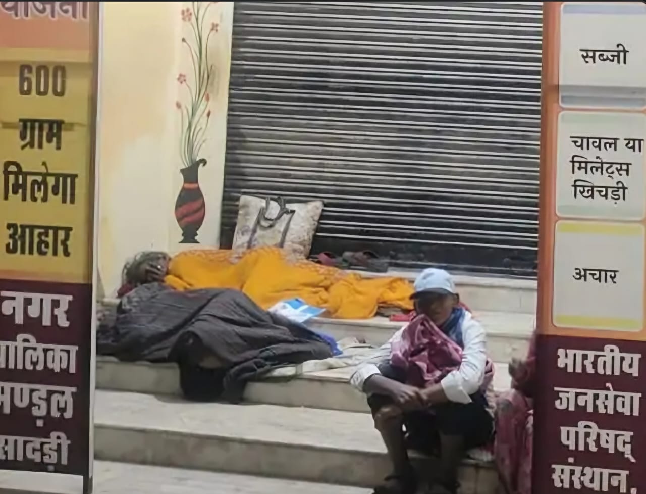 पाली 23 नवंबर 2024 लोग बोर्ड लगा होने से हुए परेशान। सादड़ी नगर प्रशासन से बेसहारा लोगो का सर्दी रात्री में भारी परेशान का सामना करना पड़ रहा हे। रेन बसेरा के ताले लटकाने से लोगों को जमीन पर सोने के लिए मजबूर होना पड़ रहा है। बाल बच्चों सहित लोग प्लास्टिक तिरपाल बिछाकर जमीन पर अपनी रात गुजारने को मजबूर हो रहे है। नगर पालिका प्रशासन की और से बेसहारा और जरुरतमंद लोगों के आश्रय के लिए बनाया गया रेन बसेरा बंद होने से बंद होने से लोगों आक्रोश है। शुक्रवार रात को भी बस स्टैंड रैनबसेरा के बाहर लगा होने से उनकी कोई परवाह नही हैं। नगर पालिका अधिशाकशी अधिकारी निलकमल सिंह ने बताया कि बस स्टैंड पर पहले रेन बसेरा था।अब भट्टा नगर में शुरु है यहां बोर्ड लगा होने से यह परेशानी हुई होगी,अब बोर्ड यहां से हटा दिया जाएगा।