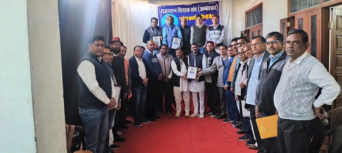 राजस्थान शिक्षक संघ अंबेडकर की प्रदेश कार्यकारिणी की बैठक रविवार को जयपुर में सोडाला स्थित निजी विद्यालय मे प्रदेश अध्यक्ष सत्य प्रकाश की अध्यक्षता में आयोजित की गई इस दौरान प्रदेश सभा अध्यक्ष मोडाराम कडे़ला, पूर्व प्रदेश अध्यक्ष विजय सिह, मांगीलाल पुनड प्रदेश उपसभा अध्यक्ष, प्रदेश वरिष्ठ उपाध्यक्ष कृष्ण बारूपाल प्रदेश उपाध्यक्ष शीशराम माहिच भगवान सहाय मीणा प्रदेश महामंत्री निदेशालय केसरी चंद जनागल मंचासीन रहे