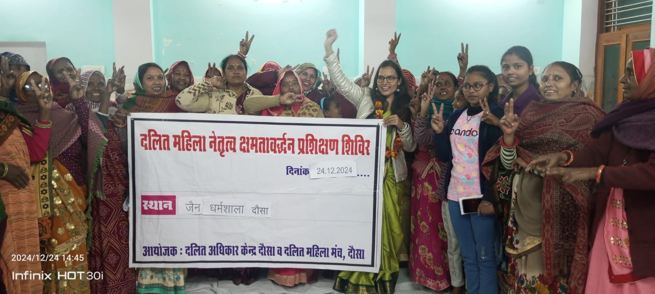 दलित अधिकार केंद्र दौसा के तत्वाधान में दलित महिला नेतृत्व क्षमता वर्धन कार्यक्रम का आयोजन जैन धर्मशाला रेलवे स्टेशन के सामने में किया गया
