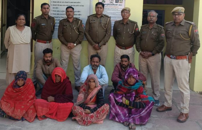 बयाना (भरतपुर) पांच दिन के बाद रुदावल थाना क्षेत्र के गांव जोतरौली में पुलिस पार्टी पर हमला करने के मामले में 4 महिलाओं सहित कुल 7 वांछित आरोपियों को गिरफ्तार किया है। थानाधिकारी नरेंद्र सिंह ने बताया कि गांव जोतरौली में दिनांक 26.11.2024 को कुछ महिलाओ व पुरुषों द्वारा पुलिस जाप्ता के साथ मारपीट व हाथापाई की गई तथा सरकारी बोलेरो का सीसा तोड दिया गया था। उक्त मामले में कार्रवाई करते हुए जोतरौली निवासी मनोज कुमार उर्फ मनीष पुत्र तेजपाल उर्फ गुडडू, तेजपाल उर्फ गुड्डू पुत्र बनयसिह, रमनसिंह पुत्र करतारसिंह, श्रीमती सुपीता उर्फ सविता पत्नी स्व. धारासिंह, श्रीमती नगीना पत्नी संजय, श्रीमती गुडिया देवी पत्नी मिथुन तथा श्रीमती विजय लक्ष्मी पत्नी रमन को गिरफ्तार किया है।