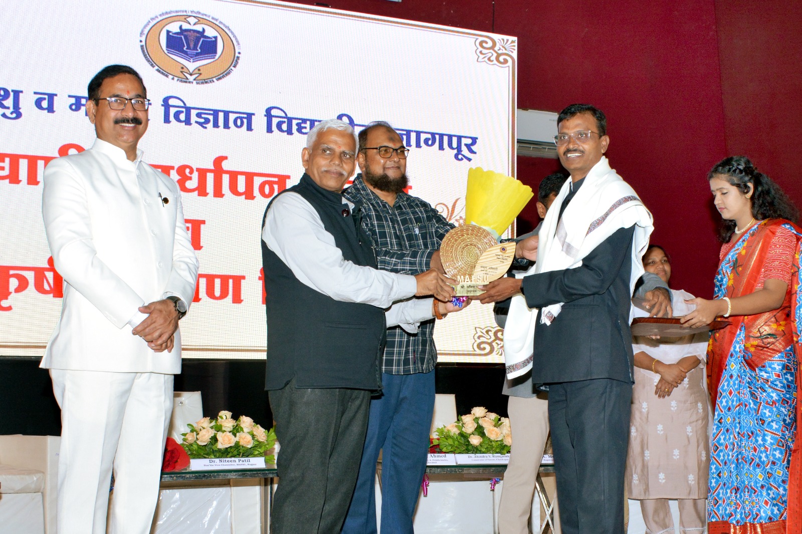 महाराष्ट्र पशु व मत्स्य विज्ञान विद्यापीठ, नागपूर की ओर से विद्यापीठ कार्यक्षेत्र में उत्कृष्ट अधिकारी/कर्मचारी पुरस्कार विश्वविद्यालय मुख्यालय में आयोजित कार्यक्रम में प्रदान किया गया। विश्वविद्यालय वर्षगांठ समारोह के अवसर पर पशुवैद्यक महाविद्यालय, नागपूर के रजत जयंती सभागृह मे आयोजित समारोह में 2023-24 वर्ष के लिए वर्ग 1 व 2 में उत्कृष्ट कार्य करनेवाले संचालक, विस्तार शिक्षा विभाग के शिक्षकेत्तर अधिकारी श्री प्रवीण बागडे का चयन कर पुरस्कृत किया गया। साथ ही इस अवसर पर उन्हें प्रशस्ती पत्र, शॉल-श्रीफल एवं सम्मान चिन्ह देकर सम्मानित किया गया। उक्त पुरस्कार वर्ष 2023-24 के लिए विश्वविद्यालय व घटक महाविद्यालयों/प्रक्षेत्रों/ संस्थानों के वर्ग 1 और 2 के एक ‘सर्वश्रेष्ठ अधिकारी’ व वर्ग चतुर्थ श्रेणी संवर्ग के एक कर्मचारी को ‘सर्वेश्रेष्ठ कर्मचारी’ पुरस्कार दिया गया। इस पुरस्कार का उद्देश्य विश्वविद्यालय एवं उसके घटक महाविद्यालयों के अधिकारियों/कर्मचारियों के उत्कृष्ट कार्य की प्रशंसा करना, कर्मचारियों में विश्वविद्यालय के प्रति ईमानदारी, सेवा तत्परता एवं आत्मीयता को बढ़ाना, उनमें उत्कृष्ट एवं असाधारण योगदान की भावना पैदा करना और कर्मचारियों और उनकी कार्यकुशलता को बढ़ाना है। श्री. बागड़े ने नागपुर जिले अंतर्गत कलमेश्वर तालुका दुधबर्डी में 20 हेक्टेयर सरकारी जमीन का अधिग्रहण करके विश्वविद्यालय के कृषि विज्ञान केंद्र के लिए शासन निर्णय लेने में महत्वपूर्ण भूमिका निभाई। इससे पहले उन्हें 2017-18 के लिए “उत्कृष्ट कर्मचारी पुरस्कार” और 2023 में ‘लुम्पी योद्धा’ पुरस्कार से सम्मानित किया गया था। वह महाराष्ट्र में कई मंत्रियों के निजी सहायक के रूप में काम कर चुके है। शासन-प्रशासन के अनुभव के साथ-साथ उन्हें समाज सेवा और साहित्य का भी शौक है। उन्होंने कोविड के तहत कई मरीजों की सेवा भी की है। उनके महाराष्ट्र के विभिन्न समाचार पत्रों में विभिन्न विषयों पर 250 से अधिक लेख और 100 से अधिक साक्षात्कार/कॉलम भी प्रकाशित हुए। इस अवसर पर कुलपति डॉ. नितीन पाटिल, जैवतंत्रज्ञान विश्वविद्यालय, हैद्राबाद के डॉ. नियाज अहमद, मुख्य वनसंरक्षक एवं क्षेत्रसंचालक, ताडोबा अंधारी व्याघ्र प्रकल्प, चंद्रपुर के डॉ. जितेंद्र रामगांवकर, निदेशक (शिक्षा) व पशुविज्ञान विद्याशाखा के अधिष्ठाता डॉ. शिरीष उपाध्ये, निदेशक (अनुसंधान) डॉ. नितिन कुरकुरे, निदेशक (विस्तार) डॉ. अनिल भिकाने, अधिष्ठाता (निम्नशिक्षा) डॉ. सचिन बोंडे, रजिस्ट्रार श्रीमती मोना ठाकुर, नियंत्रक (वित्त एवं लेखा) श्रीमती मनीषा शेंडे, विश्वविद्यालय ग्रंथपाल श्री सुनील गावंडे, विद्यापीठ अभियंता श्री. आरिफ शेख, परीक्षा नियंत्रक डॉ. भूषण रामटेक