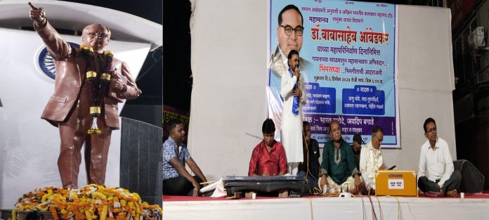 दौड, दि.6 : विश्वरत्न डॉ बाबासाहेब आंबेडकर यांच्या 68 व्या महापरिनिर्वाण दिनानिमित्त दौंड शहरामध्ये सकाळी दहा वाजता डॉक्टर बाबासाहेब आंबेडकर चौकात सर्व भीम अनुयायी एकत्रित येऊन डाॅ. बाबासाहेबांच्या पुतळ्याला पुष्पहार अर्पण व मेणबत्ती प्रज्वलित करण्यात आली व त्रिशरण पंचशील आणि बुद्ध वंदना घेण्यात आली विश्वरत्न डॉ. बाबासाहेब आंबेडकरांना मानवंदना देण्यात आली डॉक्टर बाबासाहेब आंबेडकर अमर रहे अशा घोषणा देण्यात आल्या आणि संध्याकाळी ६:३० वाजता कॅण्डल रॅली काढण्यात आली व ७:०० वाजता भीम संध्या भीम गीतांच्या माध्यमातून महामानवला आदरांजली वाहण्यात आली हा कार्यक्रम स्थानिक गायक यांच्याकडून गाण्याचा कार्यक्रम घेण्यात आला अखिल भारतीय कलाकार महासंघ यांच्या विद्यमानाने दौंड शहरातील व तालुक्यातील भीम अनुयायी या कार्यक्रमाला उपस्थित होते महामानव बोधिसत्व डॉक्टर बाबासाहेब आंबेडकर यांना आशी आदरांजली वाहण्यात आली महापरिनिर्वाण दिनानिमित्त कोटी कोटी प्रणाम भीम संध्या भीम गीतांची कार्यक्रमाचे आयोजक पॅंथर जयदीप बगाडे , भारत सरोदे , असून प्रमुख पाहुणे माजी तहसीलदार श्रीकांत शिंदे संजय आढाव नागसिंग धेंडे सागर जगताप यादव जाधव राजू जाधव अभिजीत शिंदे बी वाय जगताप आणि दौंड शहर तालुक्यातील असंख्य भीम अनुयायी या कार्यक्रमा वेळी उपस्थित होते ,