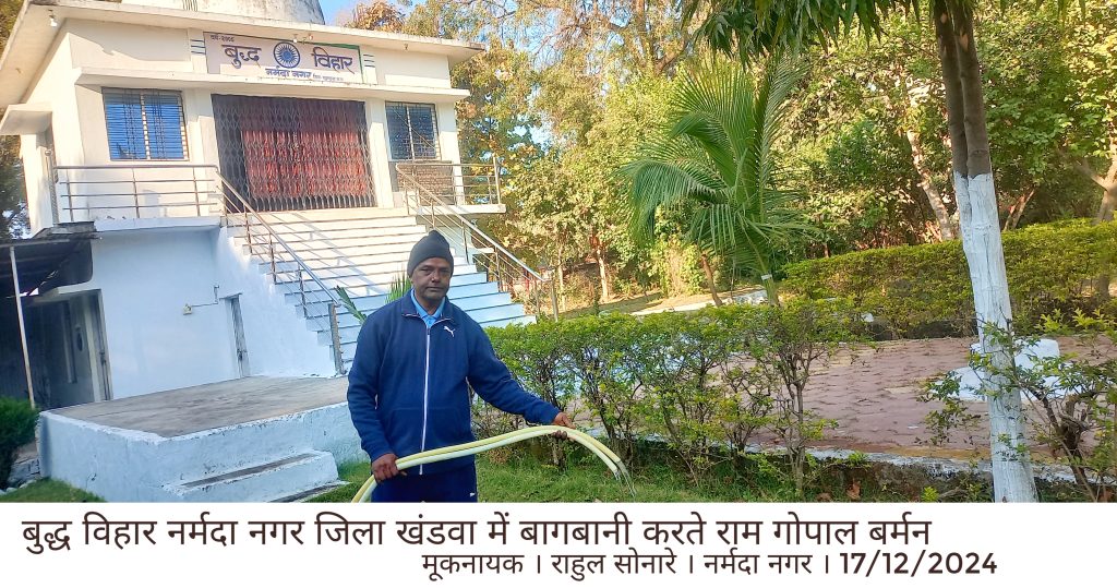 बौद्ध विहार की सेवा में राम गोपाल बर्मन का अनुकरणीय योगदान जिले के नर्मदा नगर में स्थित बौद्ध विहार में राम गोपाल बर्मन साहब का योगदान अनुकरणीय है। पिछले 20 वर्षों से वे बौद्ध विहार की सेवा में जुटे हुए हैं और अपनी सेवाओं के माध्यम से लोगों की सहायता कर रहे हैं। राम गोपाल बर्मन न केवल बौद्ध विहार के संचालन में अपनी सेवाएं दे रहे हैं, बल्कि वे रोजाना 2 घंटे बौद्ध विहार की सफाई के लिए भी देते हैं। वे खुद आकर सफाई का काम करते हैं और बागबानी का काम भी करते हैं। उनकी इस सेवा भाव की भावना को देखकर लोगों को प्रेरणा मिलती है।राम गोपाल बर्मन की सेवाओं की सराहना करते हुए, हम उन्हें उनके इस महान कार्य के लिए धन्यवाद देते हैं। उनका यह योगदान न केवल बौद्ध विहार के लिए, बल्कि समाज के लिए भी एक मिसाल है।