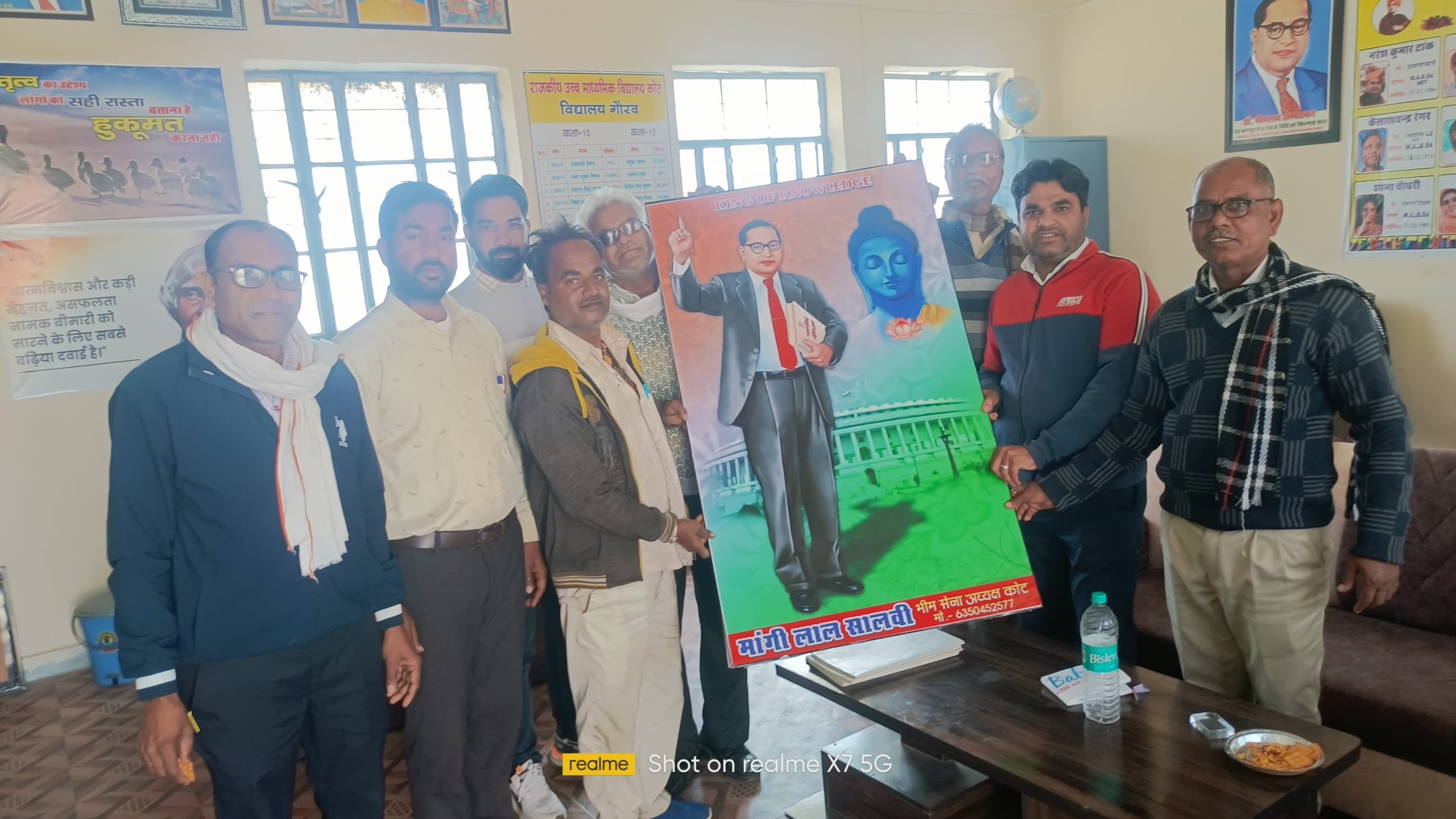 रायपुर 20 दिसंबर शुक्रवार को दोपहर को 1:00 बजे भारत रत्न बाबा साहेब डा. भीमराव अम्बेवडर की छाया चित्र श्री गणेश लाल खटीक के सानिध्य में श्री मांगी लाल सालवी निवासी कोट भीम सेना अध्यक्ष ईकाई कोट ब्लॉक रायपुर द्वारा राजकीय उच्च माध्यमिक विद्यालय कोट ब्लॉक रायपुर विद्यालय हेतु के प्रधानाचार्य श्री नरेश कुमार टॉक को विद्यालय हेतु भेंट की गई। उस दौरान श्री पारस लाल बताई, रोशन लाल कुमावत, कैलाश चंद्र रेगर, भंवर लाल बलाई, महेन्द्र कुमार, मनीष कुमार मीणा एवम समस्त स्टॉफ साथी उपस्थित थे। विद्यालय परिवार ने हर्ष व्यक्त करते हुये भी मांगी लाल जी को धन्यवाद ज्ञापित किया।