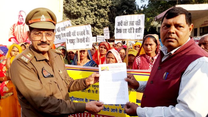 भूमिहीनों ने भूमि आवंटन को लेकर करछना में किया प्रदर्शन