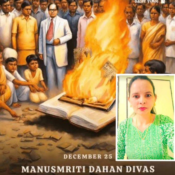 25 दिसंबर 1927 को बाबासाहेब डॉक्टर अंबेडकर जी ने सामूहिक रूप से ब्राह्मणों द्वारा लिखा गया ग्रंथ मनुस्मृति का दहन किया था जिसमें शूद्र जाति के लोगों के साथ और महिलाओं के साथ बहुत भेदभाव किया जाता था। उनके शूद्रों के साथ दुर्व्यवहारकिया जाता था। मनुस्मृति में शुद्ध और महिलाओं को अपमानित करने और उन्हें गुलाम बनाए जाने के नियम बनाए गए थे।