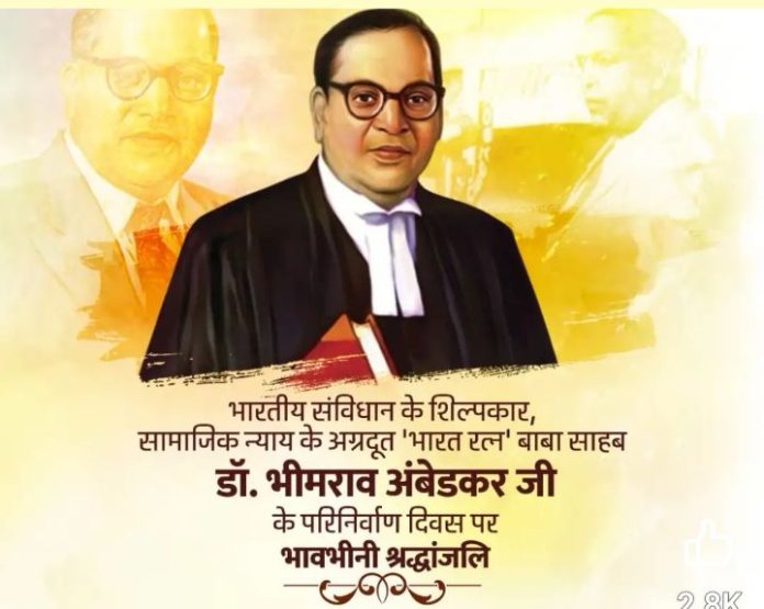 💎💎💎 महान समाजशास्त्री , अर्थशास्त्री, इतिहास के जानकार , मानव-विज्ञान के ज्ञाता, बौद्ध- पालि और संस्कृत साहित्यों के गहन जानकार, सम्पूर्ण वेदों और उपनिषदों का अध्ययन करने वाले, महान लेखक-पत्रकार, मानवाधिकारों के संरक्षक, विश्व के सभी संविधानों के गहन जानकार, कानून विशेषज्ञ, भारतीय संविधान के निर्माता, आधुनिक भारत के निर्माता, महान राजनीतिज्ञ, सिम्बल आफ नालेज, भारतरत्न बोधिसत्व बाबा साहब डॉ भीमराव अम्बेडकर जी के परिनिर्वाण दिवस पर विनम्र अभिवादन, कोटिशः नमन एवं श्रद्धांजलि अर्पित करते हैं।
