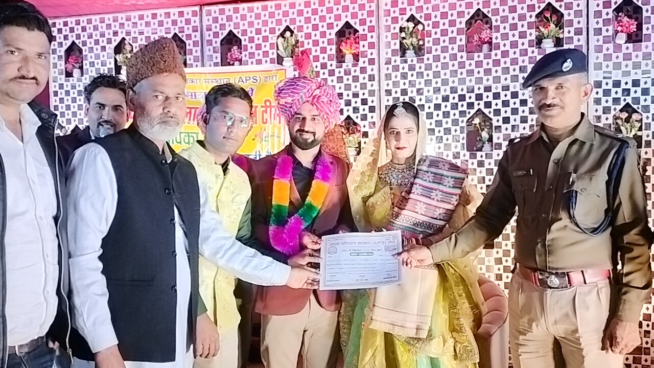 आपने अक्सर शादियों में लाखों रूपये का दहेज लेकर शादियां होती देखी होगी। लेकिन सगाई में ही आए 40 लाख रूपये, एसयूवी कार,20 तोला सोना,2 किलो चांदी सहित अन्य सामान के स्थान के पर मात्र एक रूपये का नेग स्वीकार कर शादी रचाने का अनुकरणीय उदाहरण पेश किया है करौली जिले के मकनपुर गांव निवासी और सूरत में व्यवसायी दिनेश रेखा शर्मा के बेटे प्रिंस ने। जहां प्रिंस की 21 जनवरी को बिना दहेज के शादी हुई। प्रिंस सूरत में फोरेन करेंसी विभाग में निरीक्षक के पद पर कार्यरत है। करौली में आर्शीवाद समारोह हुआ। आर्शाीवाद समारोह में एपीएस टीम पहुंची। तथा वर वधु को बिना दहेज शादी रचाने पर हार्दिक बधाई एवं शुभकामनाएं दी। इस मौके पर एडिसनल एसपी गुमना राम चौधरी ने कहा कि एपीएस टीम द्वारा दहेज के खिलाफ चलाया जा रहा जागरूकता अभियान सराहनीय कदम है। इस अभियान से अधिक से अधिक लोगों को जुडना चाहिए। उन्होने कहा कि दहेज के कारण आए दिन पुलिस थानों में मुकदमों की संख्या बढ रही है। इससे दोनों परिवार बबार्द होते है। ऐसे में हम सभी को दहेज रूपी कुरीति को दूर करने में पहल करनी चाहिए। एपीएस प्रमुख एफ आर शाह ने कहा कि दहेज लेना एवं देना दोनो अपराध हेै। दहेज एक अभिशाप है। दहेज के खिलाफ हम सभी को अपनी आवाज बुलंद करनी चाहिए। इस मौके पर वर वधु को प्रशास्ति पत्र एवं स्मृति चिन्ह देकर सम्मानित किया गया। कार्यक्रम में करौली ए पी एस टीम जिला अध्यक्ष सिराज ख़ान,शोएब ख़ान,अख़लाक़ ख़ान, दीपक पत्रकार,आसिफ़ पठान,बबलू शुक्ला, फुरकान अहमद,कप्तान करौली, सईद ख़ान आदि गणमान्य लोग मोजूद थे। फोटो कैप्शन-०१ बिना दहेज हुई शादी में वर वधु को सम्मानित करते एपीएस प्रमुख एवं एडीशनल एसपी।