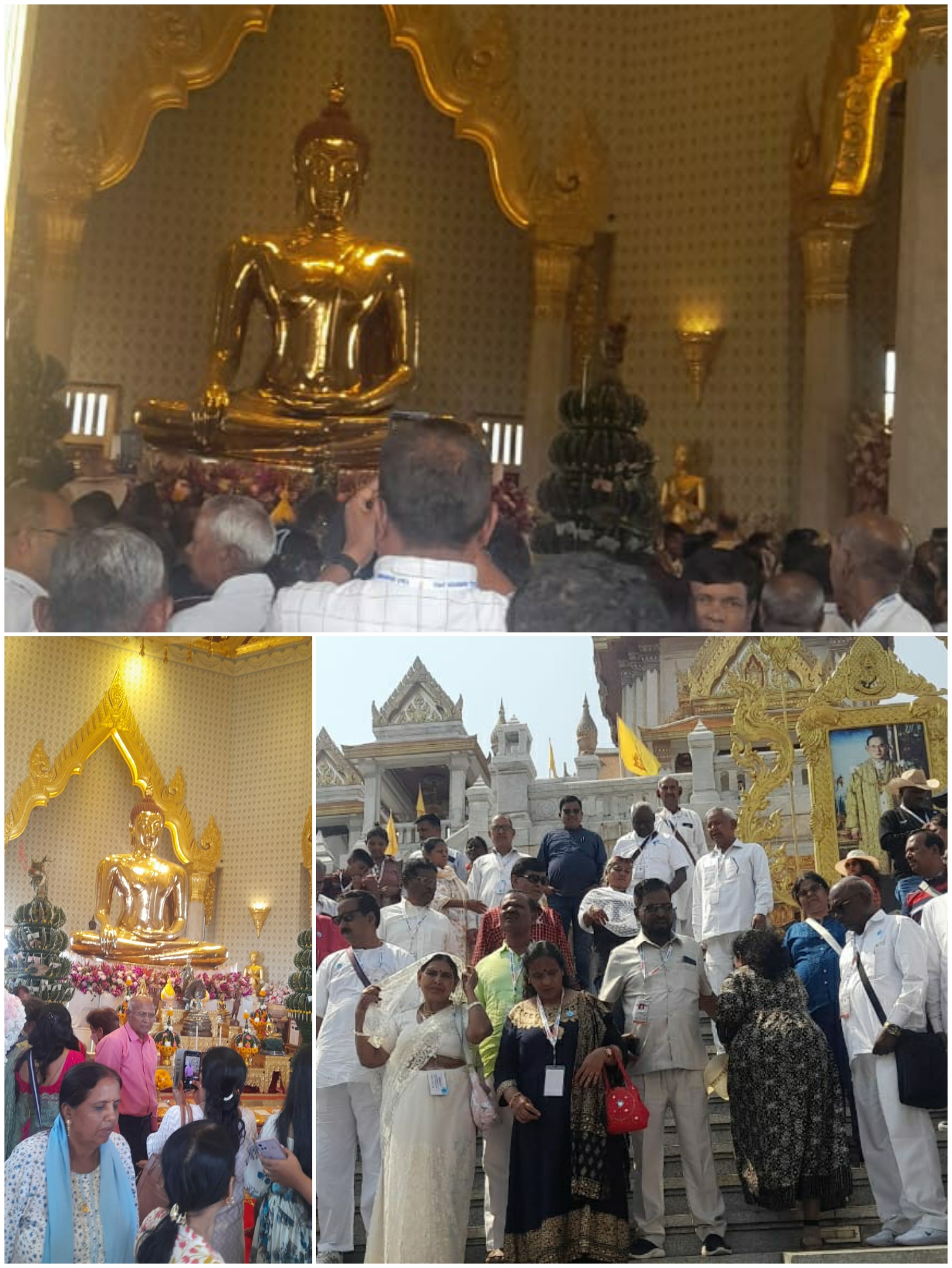गाइड से प्राप्त जानकारी के अनुसार इस स्वर्ण बुद्ध प्रतिमा का निर्माण कई सौ साल पहले ग्रामीण बौद्ध अनुयायियों करवाया था। बर्मी आक्रमणकारियों से इसको सुरक्षित रखने के लिए उन्होंने इस प्रतिमा के ऊपर सीमेंट आदिका लेप लगा दिया और वहां से भाग गए। कालांतर में अंग्रेजों औपनिवेशिक शासन काल में रोड का निर्माण करते वक्त मिली जिसे उन्होंने बैंकॉक में भव्य बुद्ध विहार का निर्माण करवा कर स्थापित कर दिया। यहां के बाद सभी यात्रियों ने दोपहर का भजन रेजीडेंसी होटल में किया और वापस होटल बैंकॉक में आकर सभी को कमरे अलॉट किए गए।