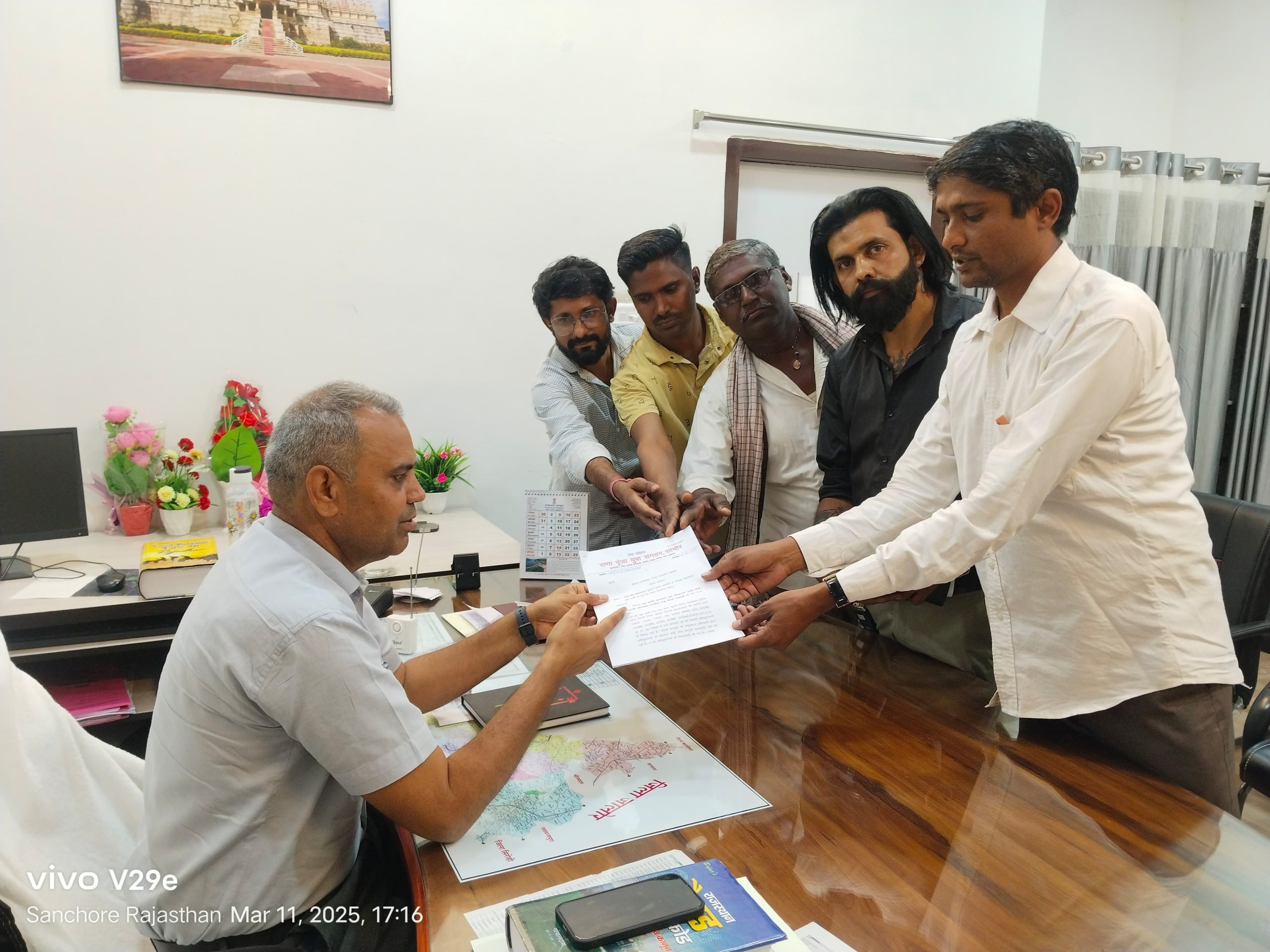 पुलिस की निष्क्रियता के विरोध में आज राणा पूंजा युवा संगठन सांचौर के पदाधिकारियों ने अतिरिक्त जिला कलेक्टर, सांचौर को माननीय मुख्यमंत्री के नाम ज्ञापन सौंपा। संगठन ने मांग की कि दोषियों की शीघ्र गिरफ्तारी कर कड़ी कार्रवाई की जाए ताकि पीड़ित को न्याय मिल सके।