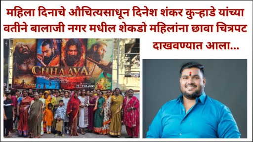 परंतू स्वताच्या मनोरंजनाकरिता ती वेळ व पैसा खर्च करतनाही तोच वेळ व पैसा ती कूटूंबाच्या उन्नती करिता, मूलांच्या शिक्षणा करीता व कूटूंबाच्या मनोरंजना करीता खर्च करते पण स्वता नाही म्हणून दिनेश शंकर कुऱ्हाडे यांनी अशा माता भगीनींनकरीता आज पिंपरीत शेकडो महिलाना ऐतिहासीक चित्रपट छावा दाखवविण्याचे आयोजन करण्यात आले होते. यावेळी शेकडो महिलांनी चित्रपट पाहून म्हणाल्या की आजचा महिला दिन सार्थकी ठरला यावेळी महिलांनी दिनेश शंकर कुऱ्हाडे यांचे आभार ही मानले.