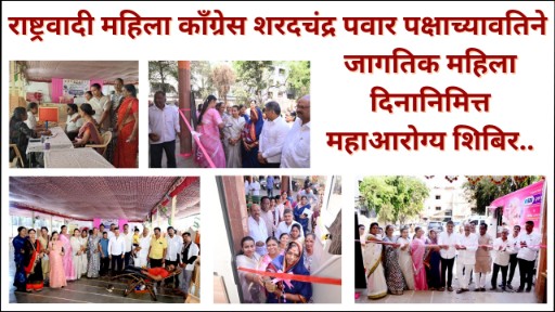 वरिष्ठ प्रतिनिधी लक्ष्मण रोकडे मूकनायक दि. १० मार्च २०२५ दि. ०८ मार्च या जागतिक महिला दिनाचे औचित्य साधून राष्ट्रवादी महिला काँग्रेसचे शरदचंद्र पवार पक्षाच्या वतीने काळेवाडी ज्योतिबा मंगल कार्यालय येथे महिला अध्यक्ष ज्योतीताई निंबाळकर यांच्या मार्गदर्शनात महिलांसाठी महाआरोग्य शिबिराचे आयोजन करण्यात आले होते. यामध्ये एच. वि. देसाई नेत्र रुग्णालय यांच्याकडून मोफत नेत्र तपासणी व मोफत मोतीबिंदू शस्त्रक्रिया, एम. ओ. सी. कॅन्सर केअर अँड रिसर्च सेंटर यांच्याकडून, ब्रेस्ट कॅन्सर तपासणी आणि जगदंब प्रतिष्ठानच्या वतीने रक्तदान शिबिर आयोजित करण्यात आले होते याप्रसंगी प्रत्येक रक्तदात्यास हेल्मेट फ्री देण्यात आले. जनतेच्या मनातील भावी आमदार राहुल दादा कलाटे यांनी या कार्यक्रमाचे उद्घाटन करून कार्यक्रमास शुभेच्छा दिल्या. तसेच शारदाताई मुंडे, पक्षाचे कार्याध्यक्ष देवेंद्रजी तायडे, समन्वयक विवेक विधाते, सचिन निंबाळकर, उपाध्यक्ष रेखा मोरे, सुनंदा काळे, अलका कांबळे, संगीता अवधूते, युवक चिंचवड विधानसभा अध्यक्ष मेघराज लोखंडे, व इतर पदाधिकारी उपस्थित होते. काळेवाडी परिसरातील बहुतांश महिलांनी आज या शिबिराचा लाभ घेतला कार्यक्रमाचे आयोजन उषाबाई काळे व विजय भाऊ काळे यांनी केले होते.