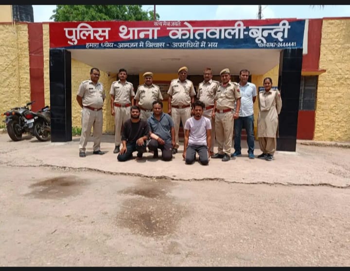बूंदी – बूँदी मै एक व्यक्ति और उनके जीजा पर तीन युवकों द्वारा किए गए हमले के मामले में पुलिस ने सभी आरोपियों को गिरफ्तार कर लिया गया है। थाना प्रभारी भंवर सिंह ने बताया पुलिस अधीक्षक राजेंद्र कुमार मीणा के निर्देशों पर पुलिस के द्वारा टीम का गठन कर त्वरित करवाई की गई थाना प्रभारी भंवर सिंह ने बताया कि यह घटना 22 मई को मीरा गेट क्षेत्र में हुई थी। पीड़ित अमित शर्मा ने बताया कि 22 मई शाम 5:30 वह अपने जीजा दीपक गोड के साथ मिरा गेट गए थे। वहां कोटा निवासी गोविंन्दा ने दीपक को देखते ही अपने साथियों के साथ मिलकर उन्हें पकड़ लिया और आरोपियों ने पाइप डंडे और चाकू से हमला किया। हमलावारों ने दीपक के सिर पर कई बार चाकू से वार किए। जब अमित ने बिच बचाव का प्रयास किया, तो उस पर भी डंडे से हमला किया गया। अमित के कान के पास भी चाकू से वार किया गया। पीड़ित के अनुसार गोविंन्दा सुमन पहले से ही उसकी बहन को ब्लैकमेल कर रहा था। घटना की सूचना मिलते ही पुलिस मौके पर पहुंची और घायलों को अस्पताल भेजा गया मुख्य आरोपी गोविंन्दा को लोगों ने मौके पर ही पकड़ लिया, जिसे हमले में चोट लगने के कारण अस्पताल में भर्ती कराया गया। पुलिस ने त्वरित कार्रवाई करते हुए फरार हुए अन्य दो आरोपियों को भी गिरफ्तार कर लिया गया। मामले की जांच थाना प्रभारी भंवर सिंह कर रहे हैं।